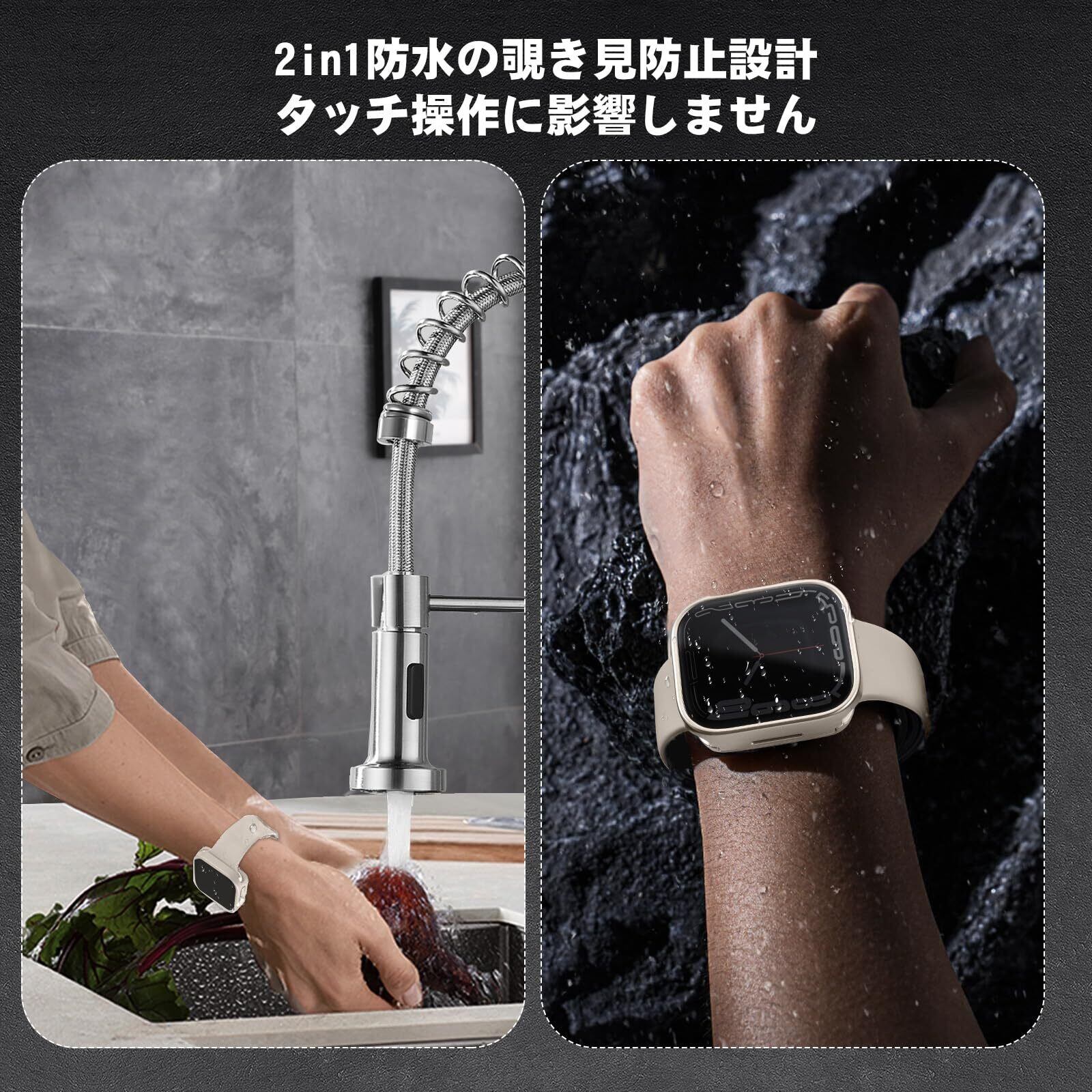 【2022最新】【2in1 防水の覗き見防止設計】LISAMER 対応 アップルウォッチ カバー Series 10 46mm 対応 Apple Watch カバー 一体型 新デザイン 超薄型 PC+ガラス素材 全面保護 装着簡単 高透過率 高耐久 耐衝撃 Apple Watch用 ケース 46mm スターライト | allstore3