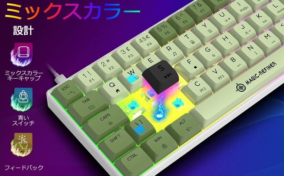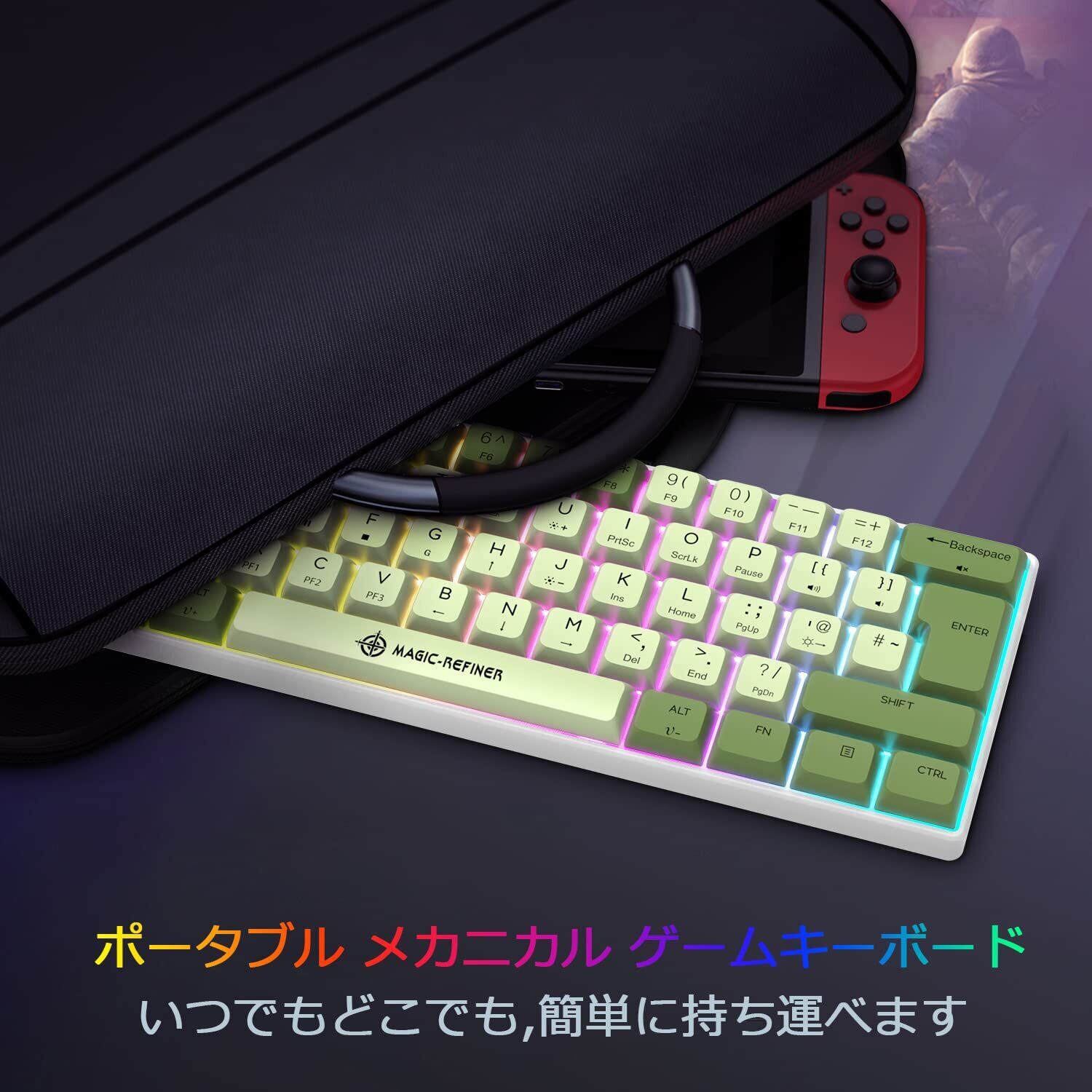 メカニカルキーボード 有線 青軸 ゲーミングキーボード テンキーレス RGBバックライト MacOS/Windows/iOS対応 英語配列 60% コンパクト type c USB接続 防水 19キー防衝突 ゲーム/オフェス適用 在宅勤務 日本語説明書(アボカドグリーン)