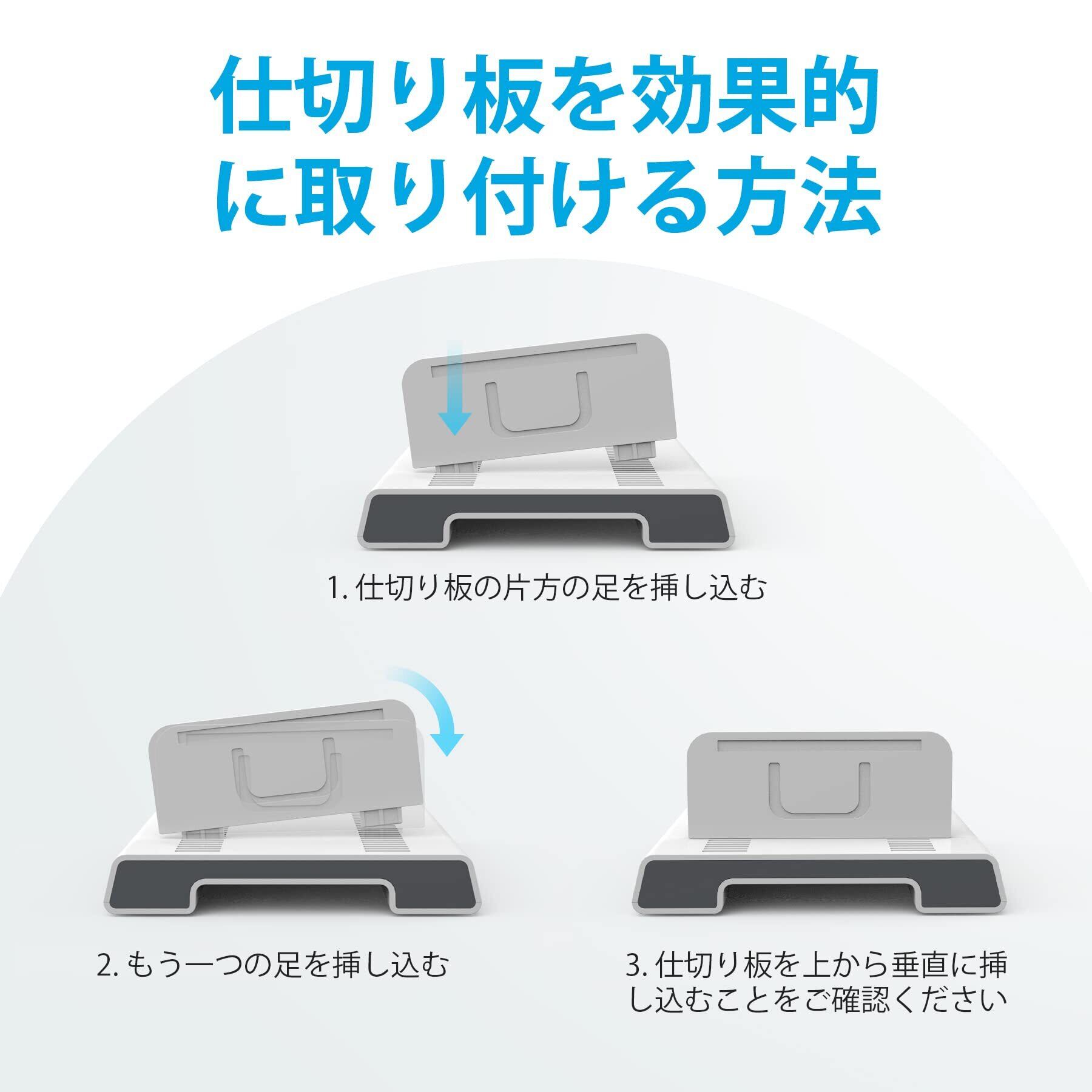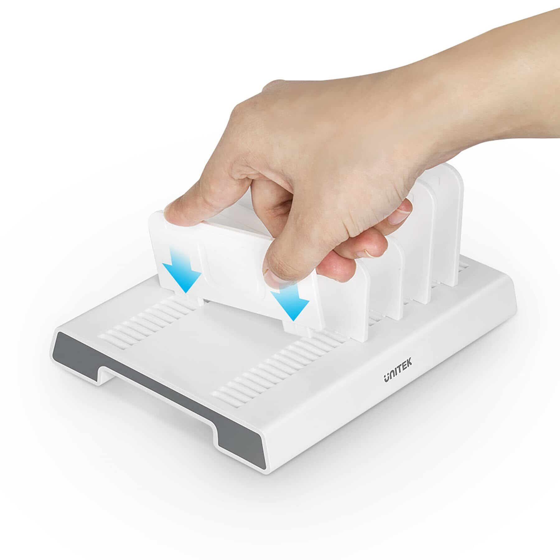 【お好みにより間隔調整可】仕切り板を5mm単位で好きな幅で自由に調整できます。差し込みもとても簡単で保護カバーを取らずにスマホなどを置いたまま充電ケーブルを接続できます。Unitek置き複数台で乱雑していた机の上をスッキリとした空間を作り出すことができます。
