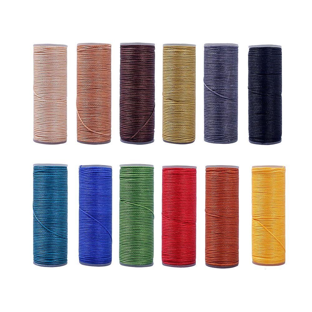 【新着商品】蝋引き糸 0.35mm ロウビキ ワックスコード 蝋引き紐 極細 レザークラフトとマクラメ用12色セット工具 手縫い 編み 手芸 紐 DIY 糸 ろう引き糸 (丸紐A) | allstore3