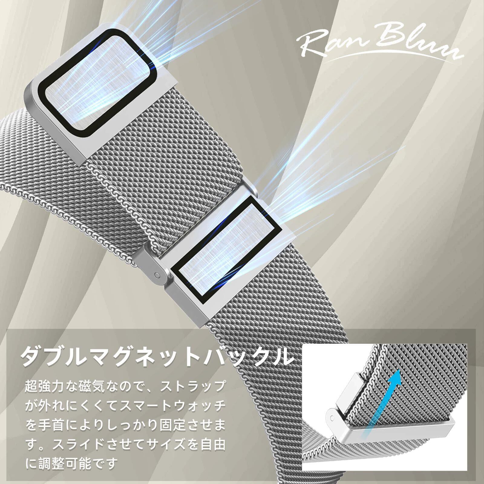 [RanBluu] 22mm 20mm バンド 交換バンド マグネット 22ミリ 20ミリ スマートウォッチ 交換ベルト 替えベルト メッシュバンド ステンレス クイックリリース ストラップ 調節可能 通気性 男女兼用 普通時計 (22 mm シルバー)