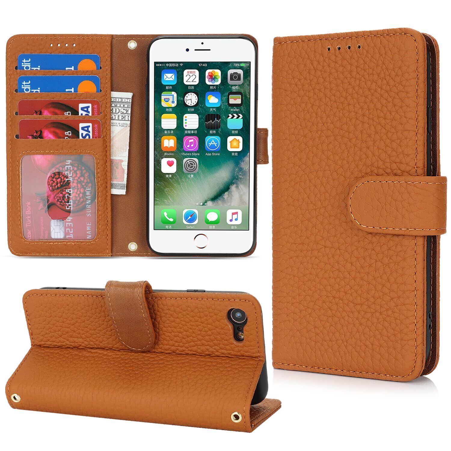 DEYHU iPhone SE ケース 第2世代 第3世代 手帳型 カード収納 スタンド機能 iPhone 8 ケース 本革 大容量 耐衝撃 カード収納 iPhone 7 ケース 手帳型 アイフォンse ケース レザー アースイエロー