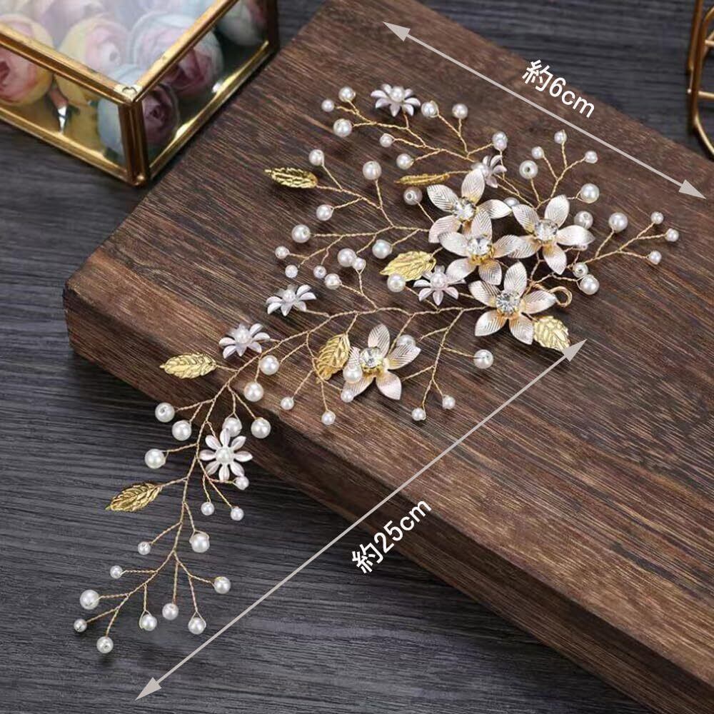 【商品セット】髪飾り本体*1。髪飾り長さ約25cm、重量約16g、カラー:ゴールド 。素材:人工真珠、合金で作られています。長持ちして繊細で魅力的です。