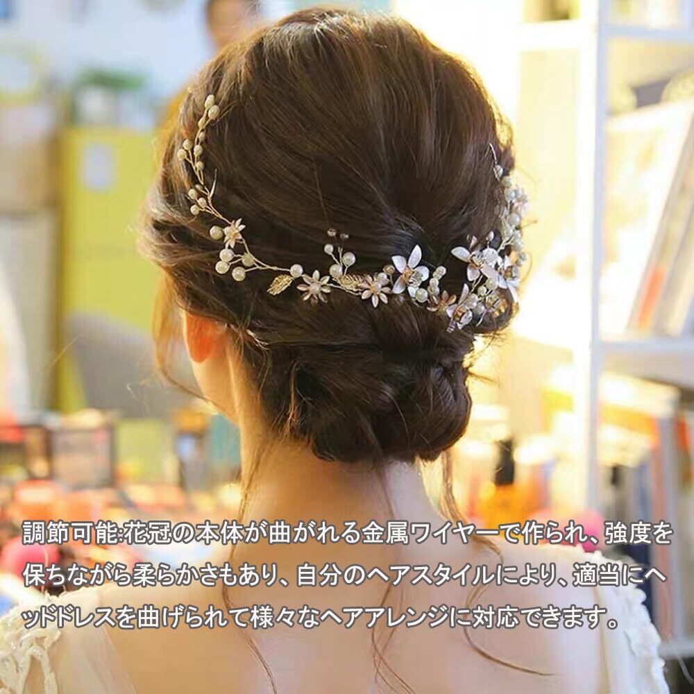 【調節可能】花冠の本体が曲がれる金属ワイヤーで作られ、強度を保ちながら柔らかさもあり、自分のヘアスタイルにより、適当にヘッドドレスを曲げられて様々なヘアアレンジに対応できます。自分にぴったりの角度調整が可能、トップやサイド、バックなどお好きな位置に留めて個性的なアレンジが楽しめます。
