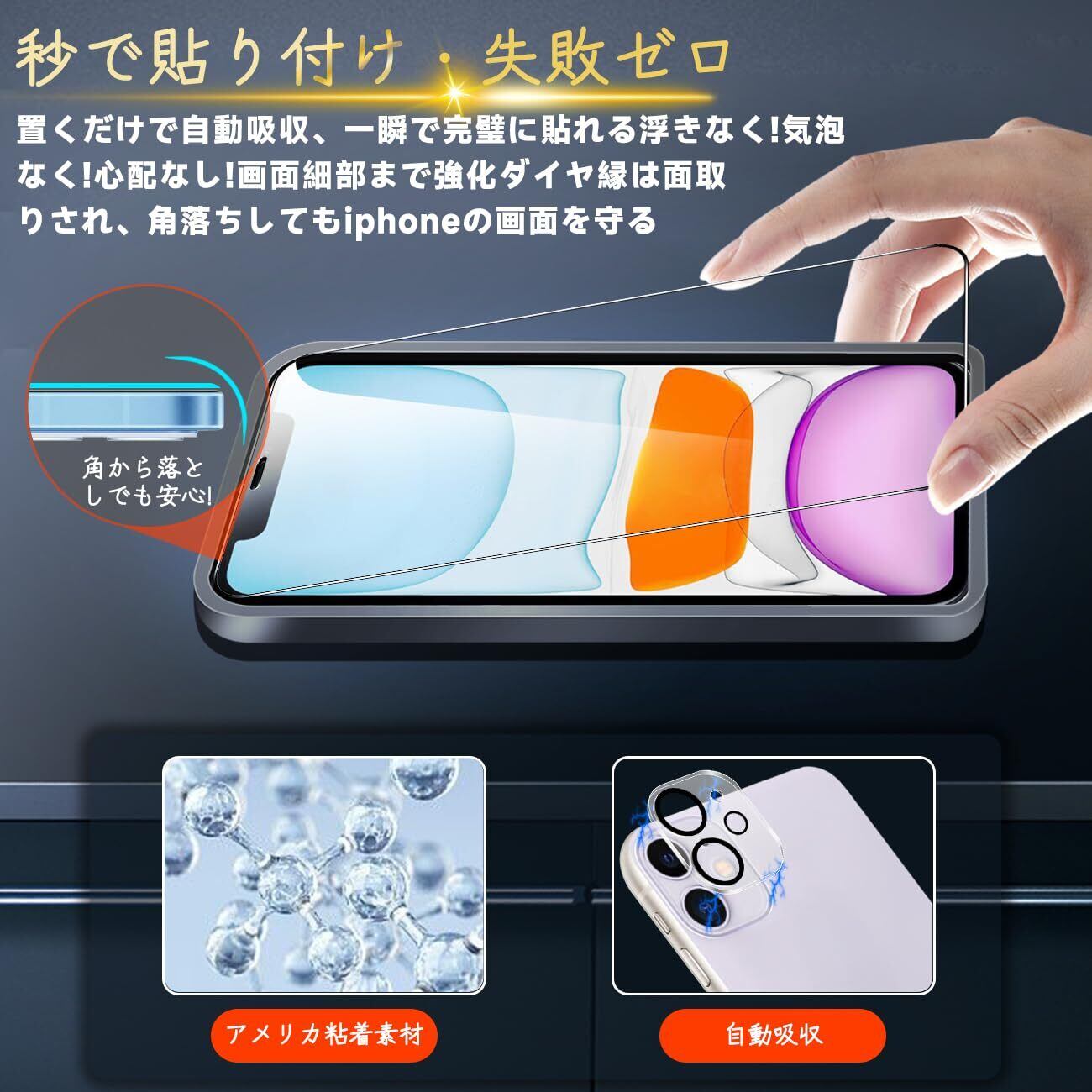 【専用設計·簡単に貼り付け】 本製品 Apple iPhone11 6.1インチ アイフォン11 あいほん 11 専用液晶画面保護ガラスフィルムです。本商品は厳選した素材を採用して作られており、フィルムのシリコン自己吸着層があるので、スチールフィルムを携帯電話に合わせて軽く置くだけで、気泡が入らないように簡単に取り付けられます。(ポイント:フロントカメラのカメラ穴についてですが、ほこり・異物などの堆積を防止するため、ガラスフィルムにカメラ穴を開けていません。Seninhiのガラスフィルム 、透過率は99.9%なので、フロントカメラの正常使用に全く影響がありません。)*機種によってサイズが異なりますので、ご購入の場合に機種をよく確認してください。