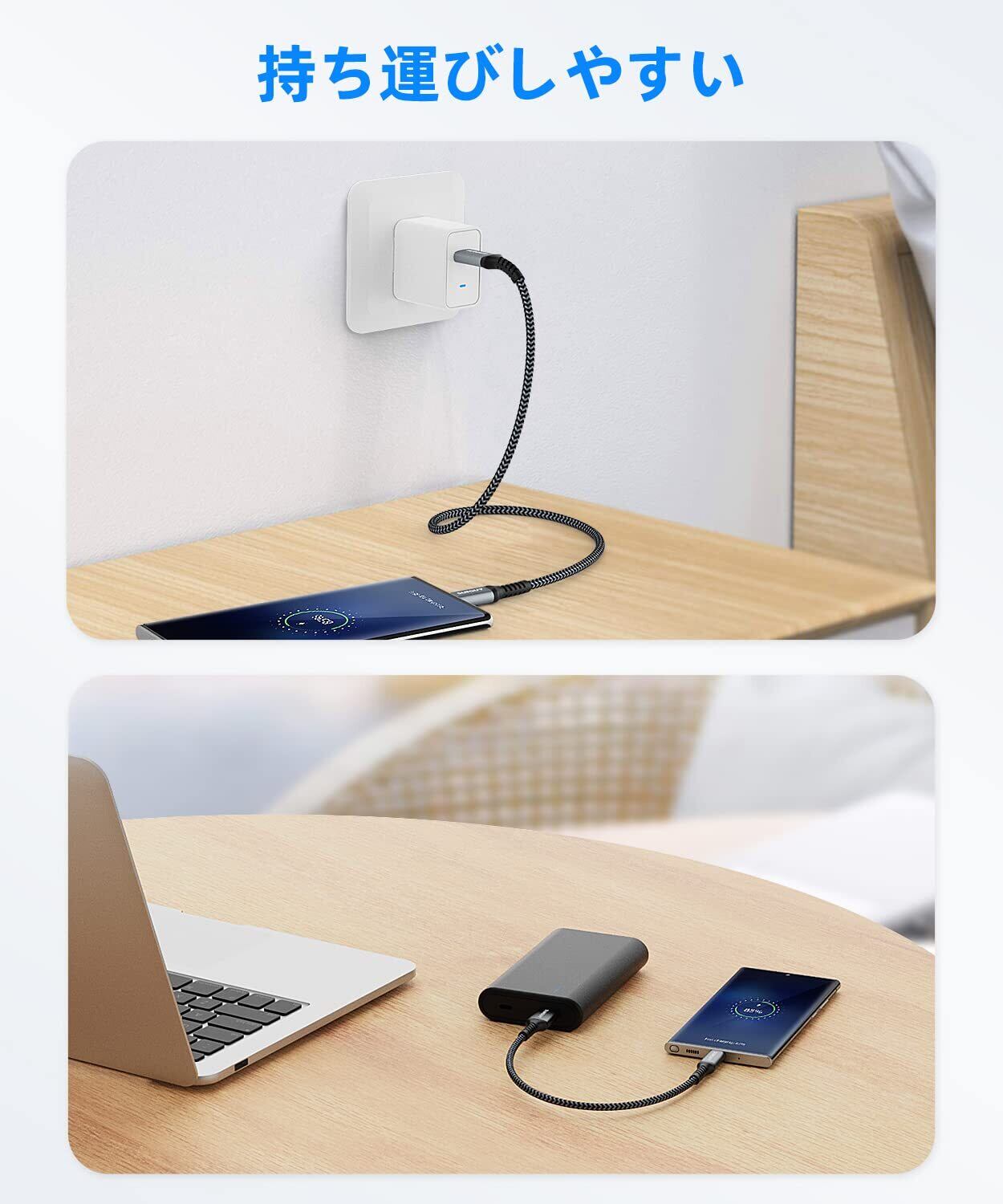 【0.3m 短いtype cケーブル】短い距離でスマートフォンを充電することできます。自宅、オフィス、車に簡単に保管でき、持ち運びもやすくて巻き取りなし。旅行中にも充電を完成して、とても便利です。