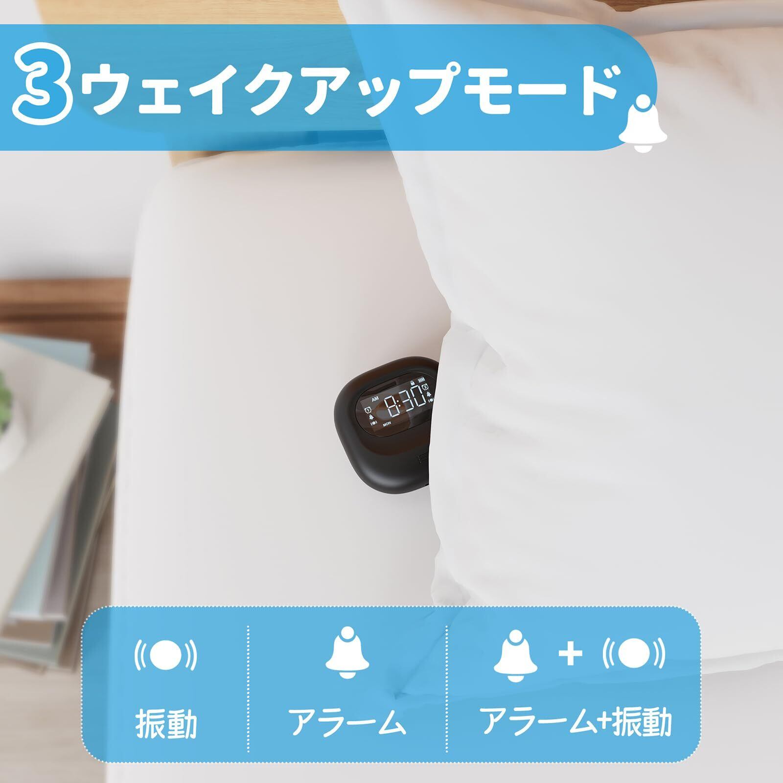 【数量限定】Mesqool 目覚まし時計 バイブレーション付き 振動式 枕の下用 ダブルアラーム 大容量バッテリー 充電式 バックライト スヌーズ機能付き 絶対起きれる デジタル 振動目覚まし 視覚障害者用時計 寝室/リビングルーム/オフィス適用小型時計 (ブラック)