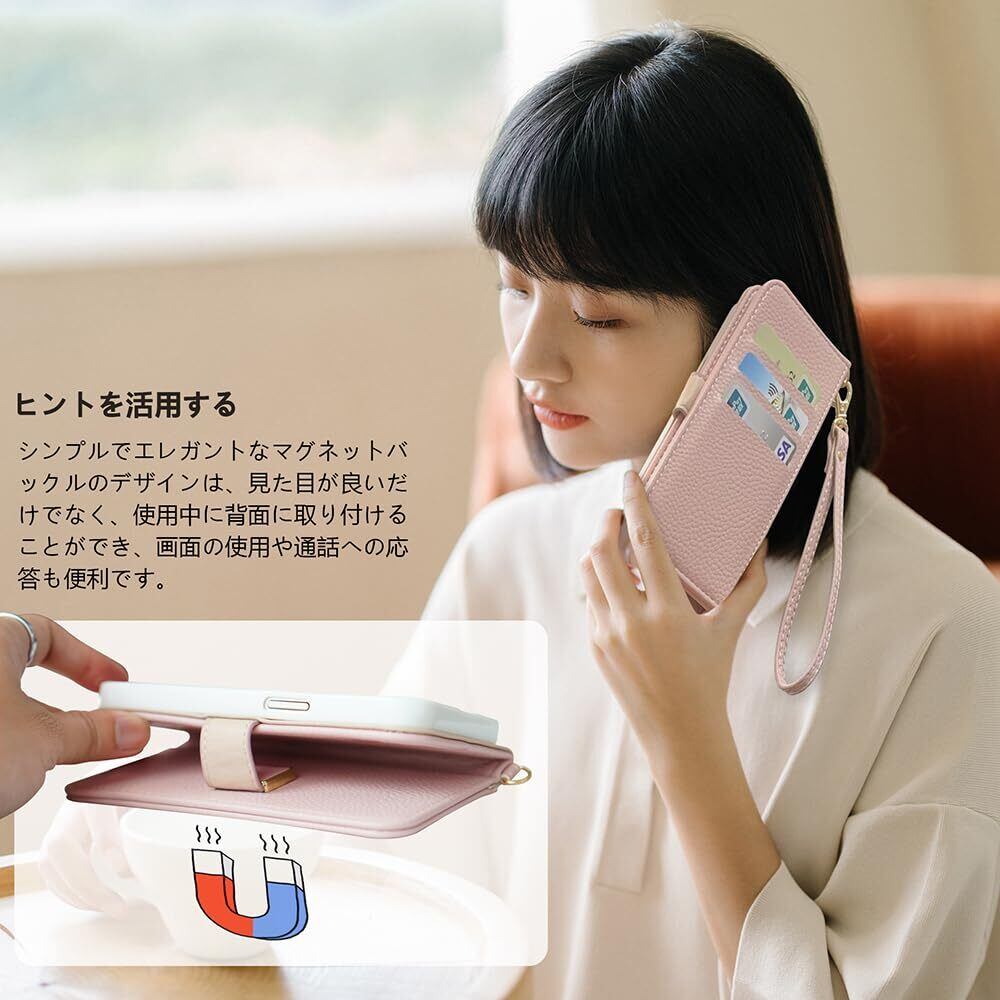 iPhone 15 ケース 手帳型 スマホケース いphone15 財布型 カバー カードポケット付き iPhone15 ケース 軽量 薄型 全面保護 耐衝撃 贈り物 あいほん アイフォン15 カード収納 スタンド機能 横置きスタンド機能 高級PUレザー 上質な手触り アイホン15 ケース (iPhone 15 6.1 inch対応) - ピンク