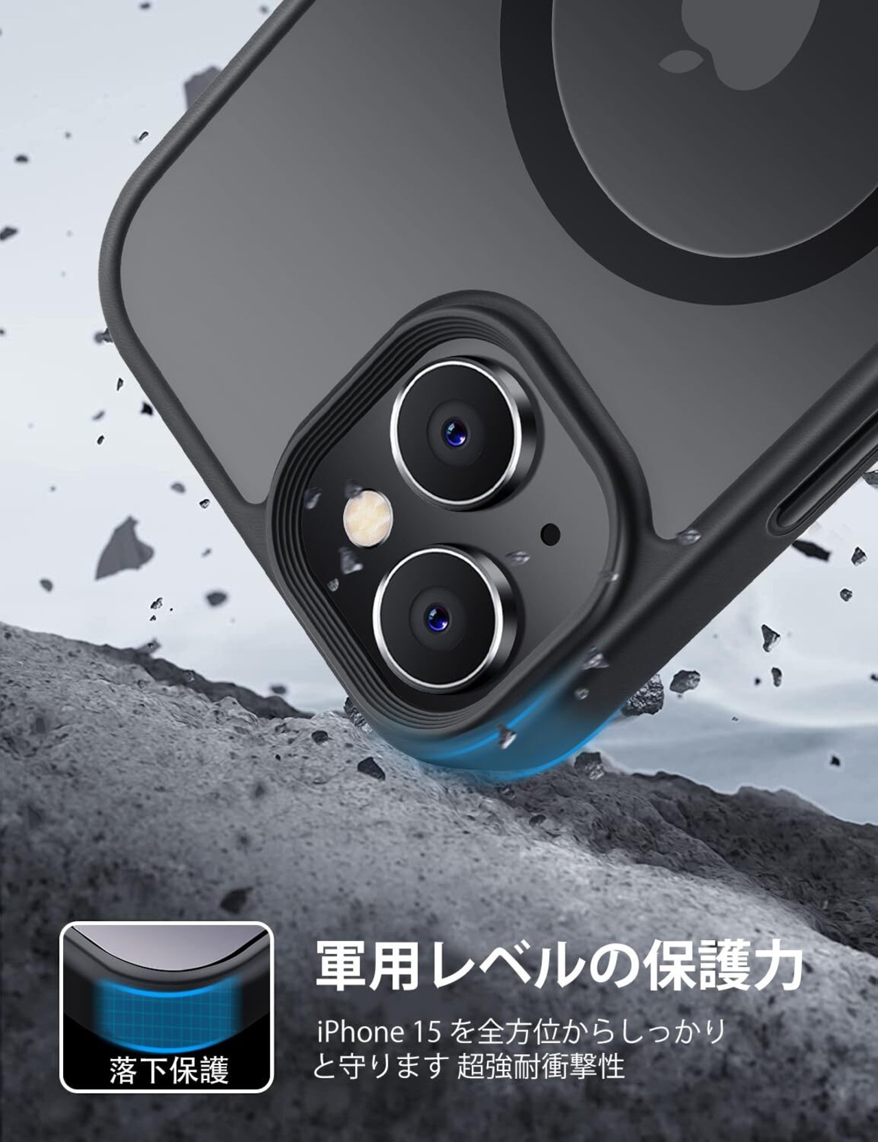 iPhone 15 用 ケース MagSafe対応 ワイヤレス充電 磁気ケース 耐衝撃性 米軍MIL規格の保護 傷に強い背面 6.1インチ