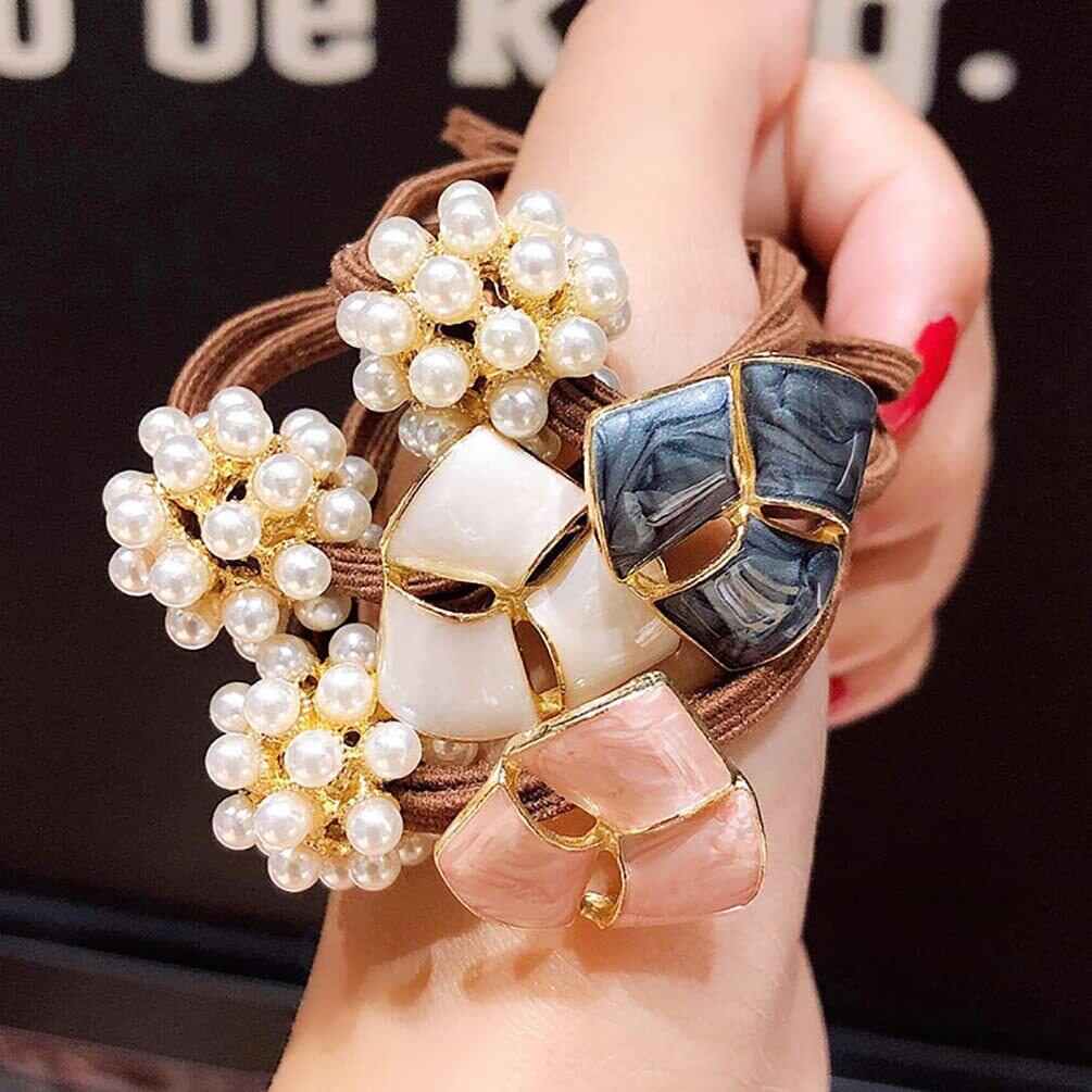 【特価セール】ヘアゴム 10点 セット パール ビーズ 大人 シュシュ ヘアアクセサリー 上品 カジュアル オフィス 髪留め おしゃれ春 夏 秋 (Aset)