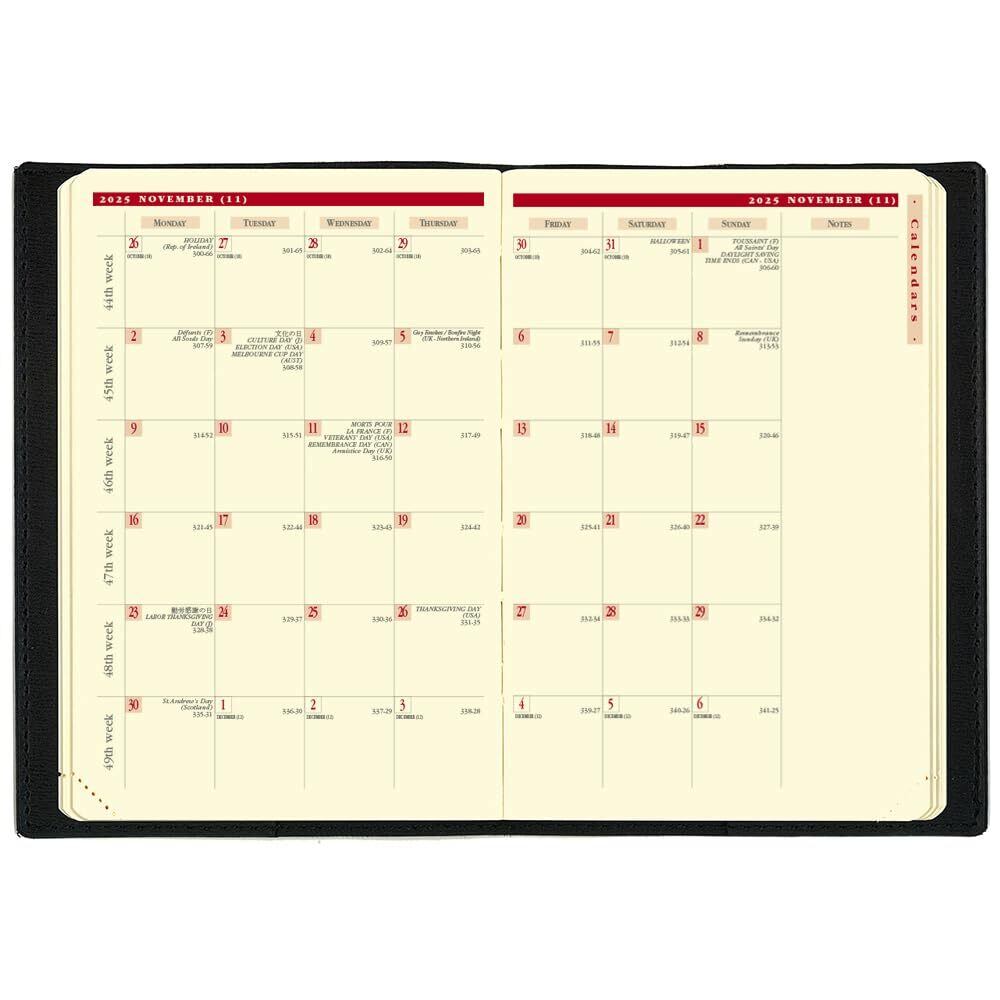 手に馴染むサイズに、曜日ごとに設けられたノートスペースが便利な手帳です。エレガントなアイボリーペーパー。