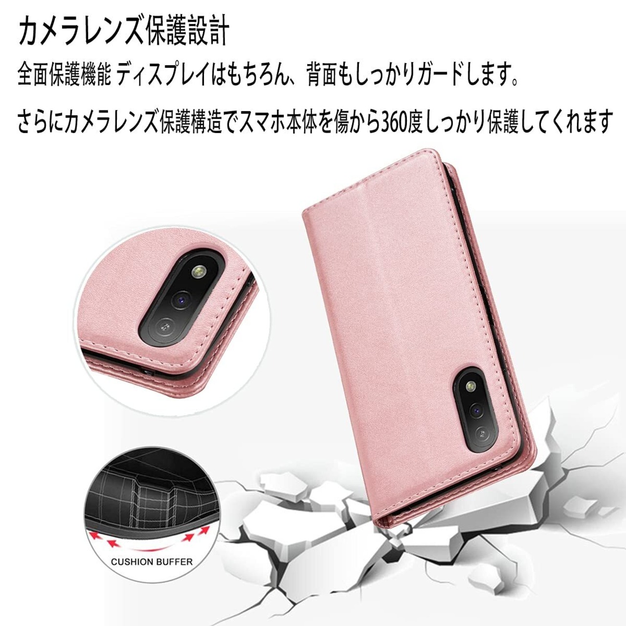 Xperia Ace II ケース 手帳型 高質PUレザー ソニー Xperia Ace II カバー SO-41B ケース エクスペリア エース ii SO-41B カバー 耐衝撃 皮革 内蔵マグネット開閉式 ベルトなし スマホケース おしゃれ カードポケット スタンド機能 便利 スプラット同梱 携帯ケース (ピンクゴールド)
