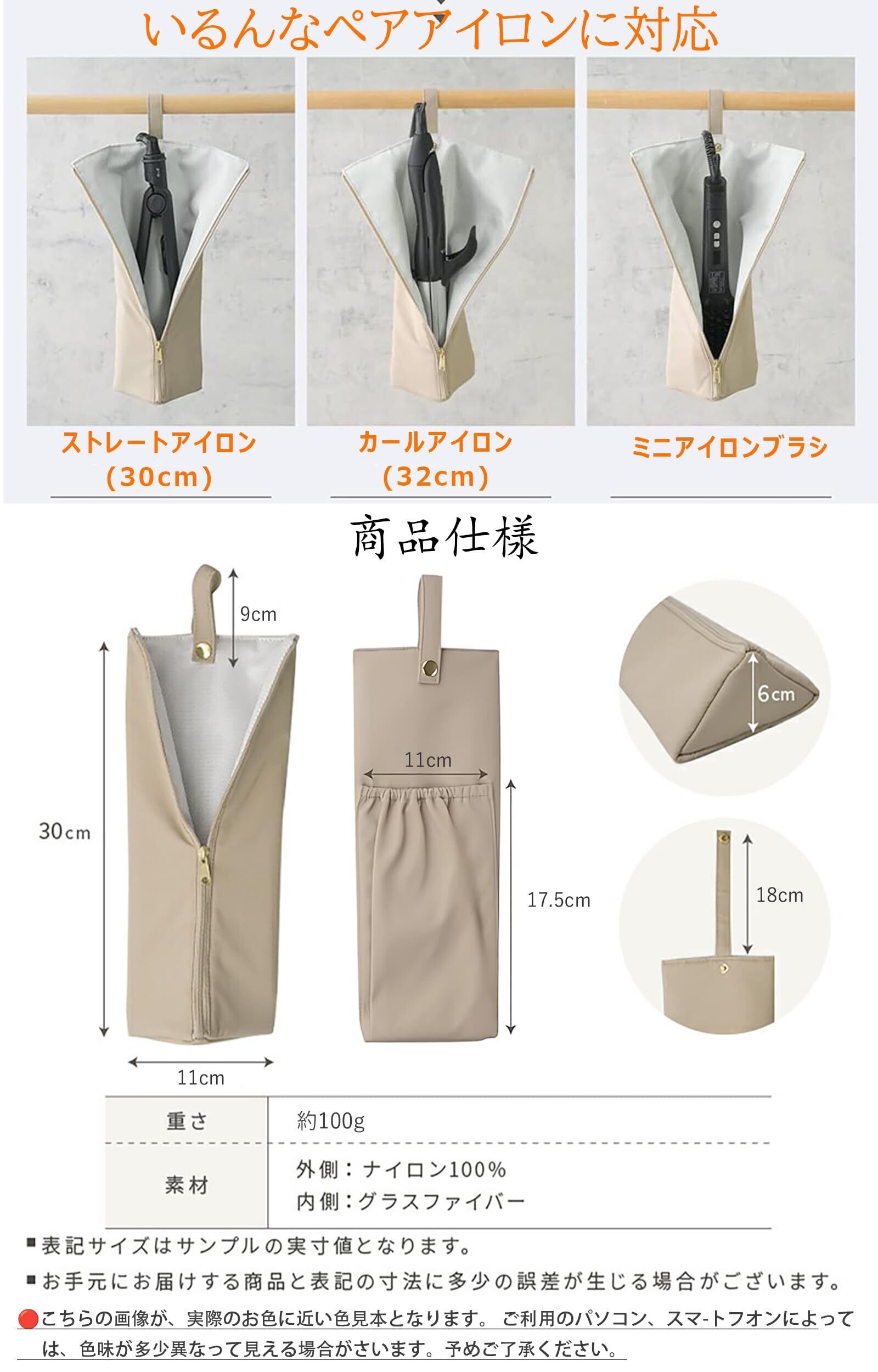 【 旅行中の持ち運びポーチとしても 】厚みのある生地がヘアアイロンを確実に保護し、旅行の持ち運びポーチとしても活躍します。熱に強い耐熱素材を使用しているため、アイロンをしまったままでも安心。チェックアウト前でもすぐにポーチに収納し、スーツケースに入れても安心です。