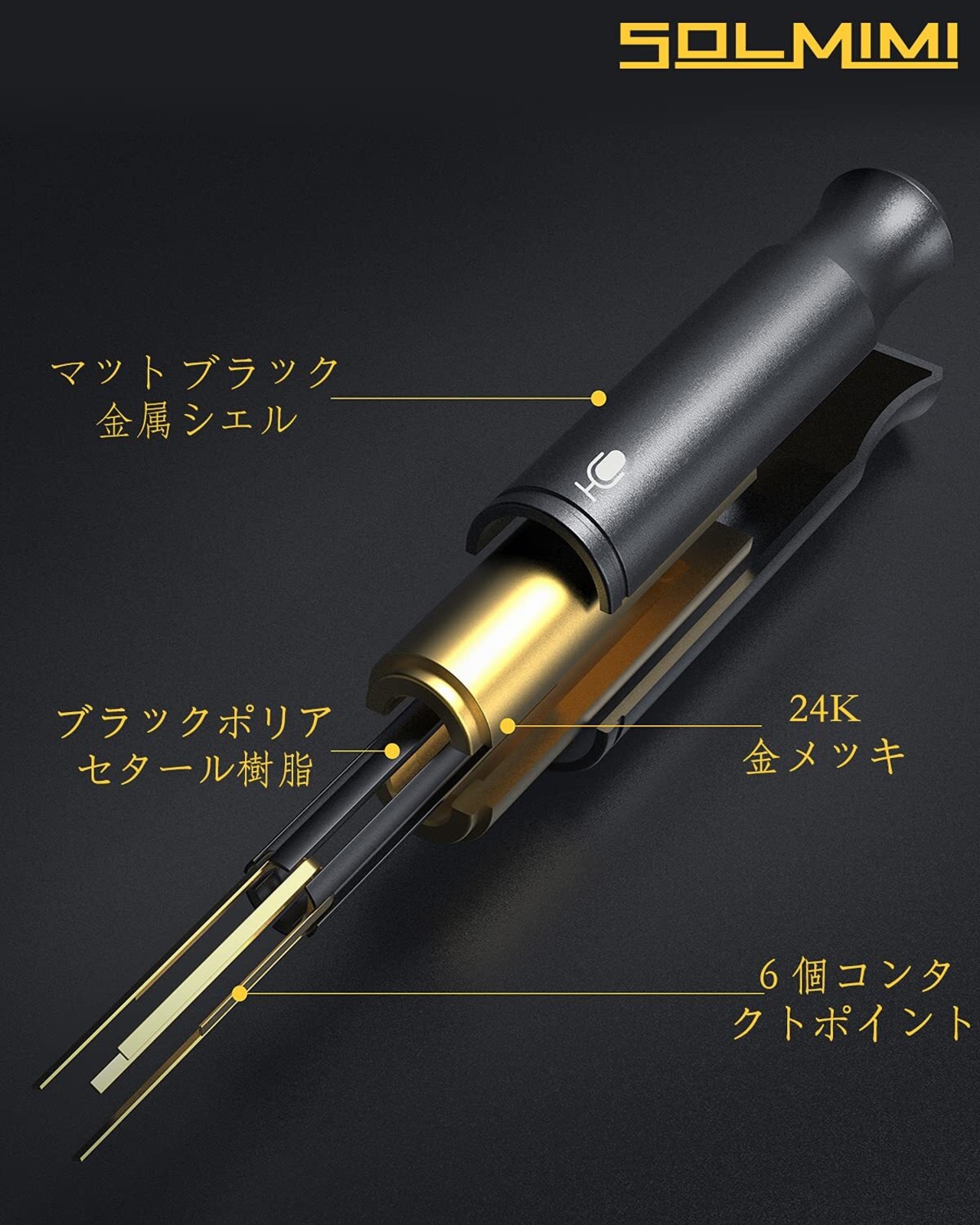 『ボトルデザイン』3.5mm オーディオ変換ケーブル端子はボトルデザインで繰り返しの挿抜しやすい、24K金メッキ端子、4NOFC(無酸素銅)と金属シェルを組み合わせ、伝導度、耐久性を最大に実現できるだけでなく、外観が美しく、磨耗に強く、柔らかでよくなります。(コンデンサーマイクに対応不可です)