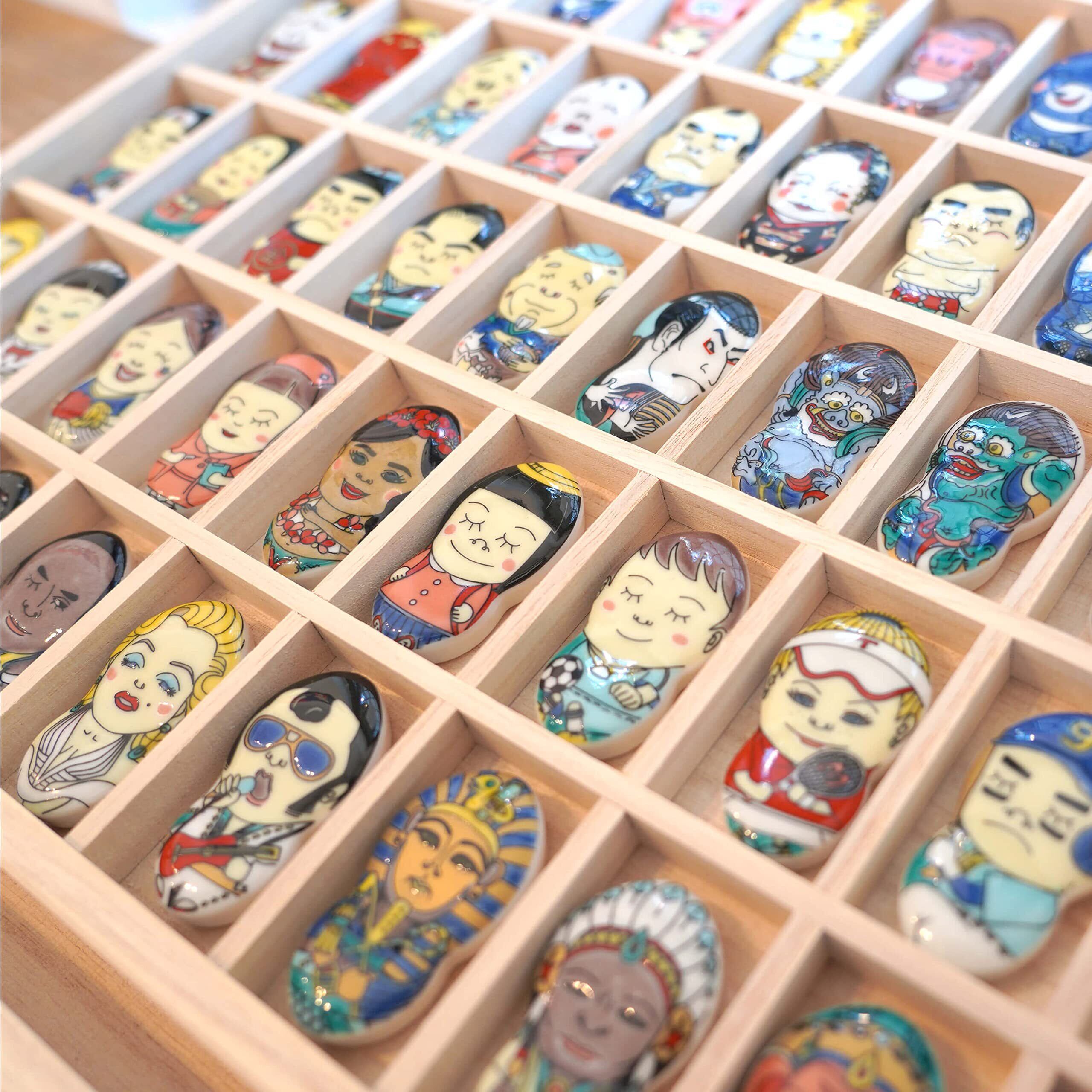 【青郊窯】集める九谷人形箸置きTubbies 2個セット/般若・ダルマ