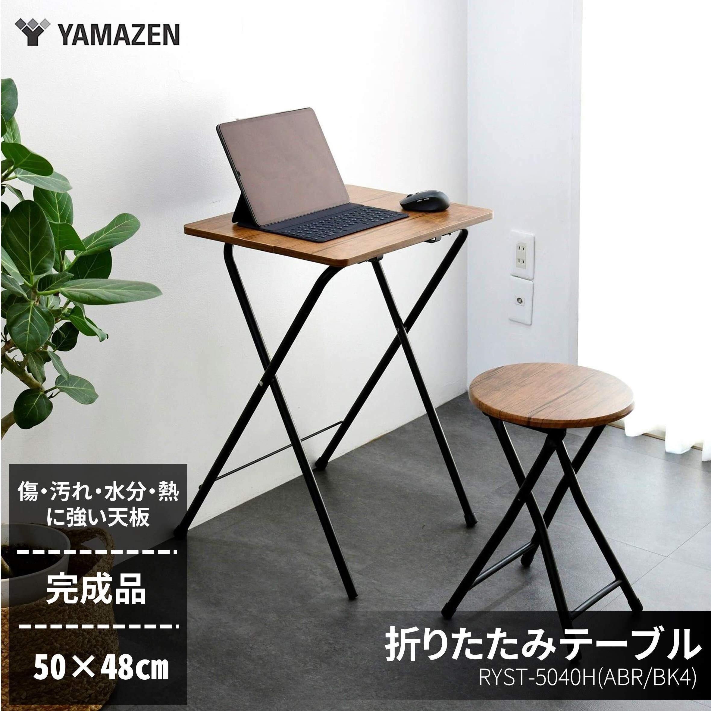 山善(YAMAZEN) テーブル ミニ 折りたたみ サイドテーブル 幅50×奥行48×高さ70cm ハイタイプ 傷・汚れ・水分・熱に強い天板(メラミン加工) なめらかな表面 角が丸い アンティークブラウン/ブラックRYST5040H(ABR/BK4) 在宅勤務