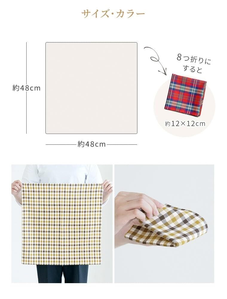 生産地:日本 素材:綿100% サイズ:約48×48cm カラー:チェック5柄セット(全3種類)、チェック3柄セット(全6種類) セット内容:ハンカチ5枚セット、ハンカチ3枚セット お届け:1枚ずつ透明な袋で個別包装したハンカチをまとめて袋に入れた状態でお届けします。プレゼントやイベントのプチギフトにもおすすめです。 ※ブランドタグ刷新にともない、商品によってブランドタグのデザインが新旧混在しております。お届けするデザインはお選びいただけませんので予めご了承ください。なお、生産会社・販売元・商品品質に変更はございません。