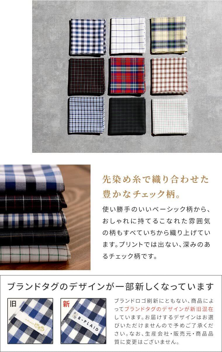[B-PLAID] ハンカチ メンズ 日本製 3枚 5枚 セット 大判サイズ 48×48cm チェック柄 速乾 吸水 薄手 ギフト