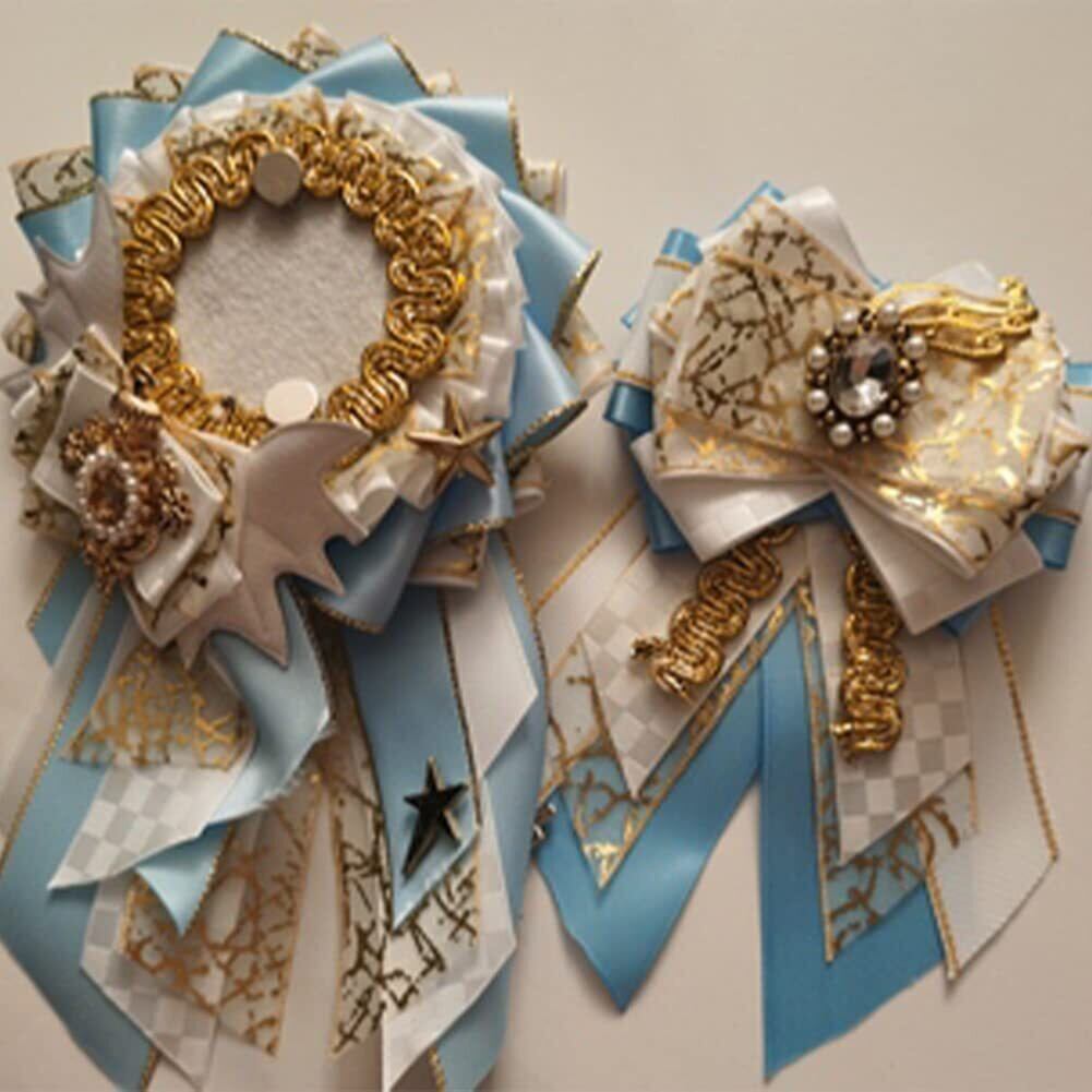 デザイン:正面缶バッジ取付箇所内側に磁石内蔵、背面はピン付き、ロゼットを固定する用です。痛バッグの透明窓につけて、好きなキャラを展示されます。