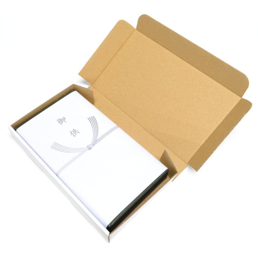 包装外のし付き、名入れ不可: 包装外には「御供」とだけ印刷されたのし紙が付いていますが、名入れの印刷はできません。「御供」は御霊前や御仏前などのお悔やみ事全般に使えるため、幅広いシーンでご利用いただけます。