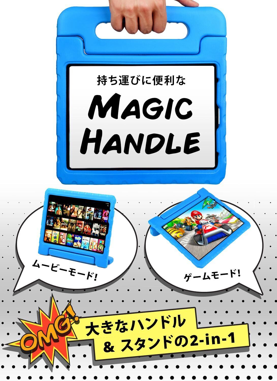 【 3 in 1 ハンドル&スタンド&ペンホルダー 】 小さなお子様の手にも握りやすい大きなハンドルを装備 (ペン収納ホルダー付き)