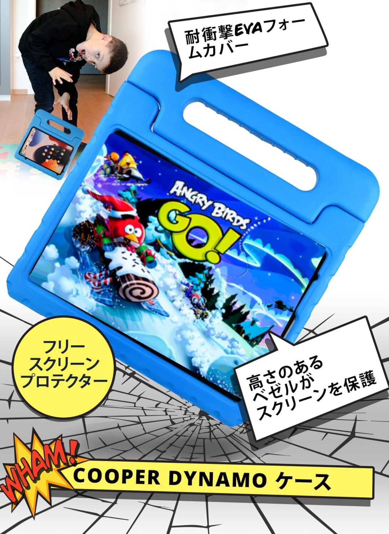 【 子供の使用にも耐えうる耐衝撃性能 】 弾力性のあるEVA衝撃吸収素材でiPadを包み込むように保護