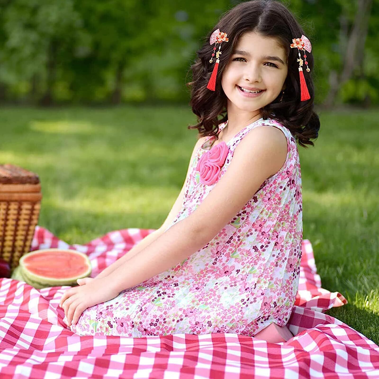 ヘアピン ヘアアクセサリー 女性 子供髪飾り 2枚組 古典的 扇子 鈴 タッセル ヘアクリップ 中華風 漢服 浴衣 和装 ヘアクリップ 入学式 卒業式 七五三 コスプレ プレゼント (レッド)