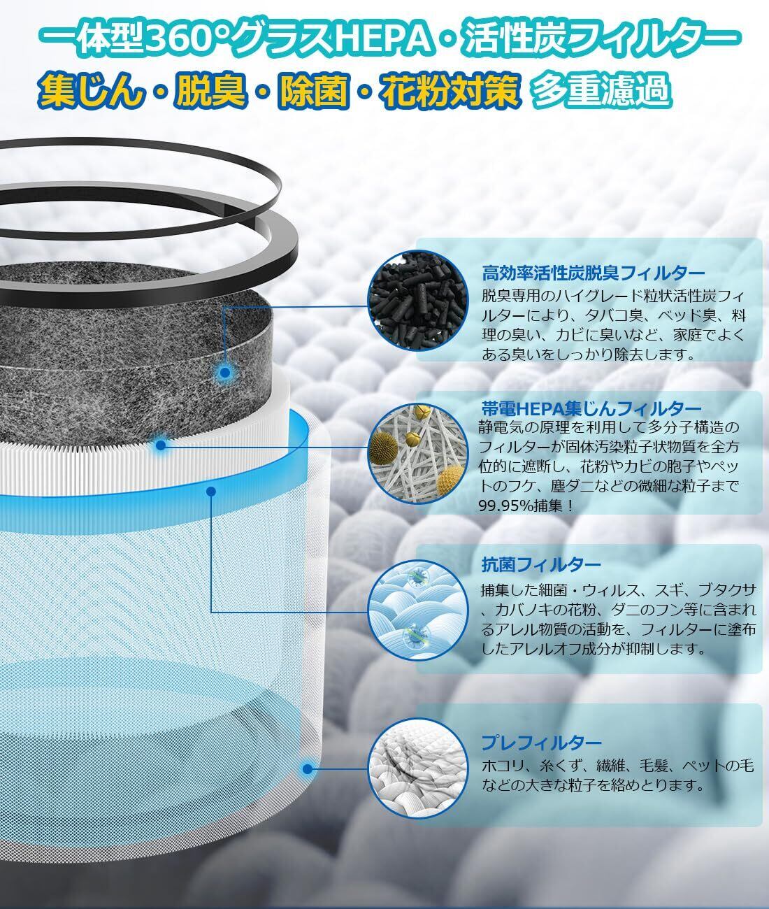 【機能】集じん・脱臭・抗菌・抗ウィルス・花粉対策