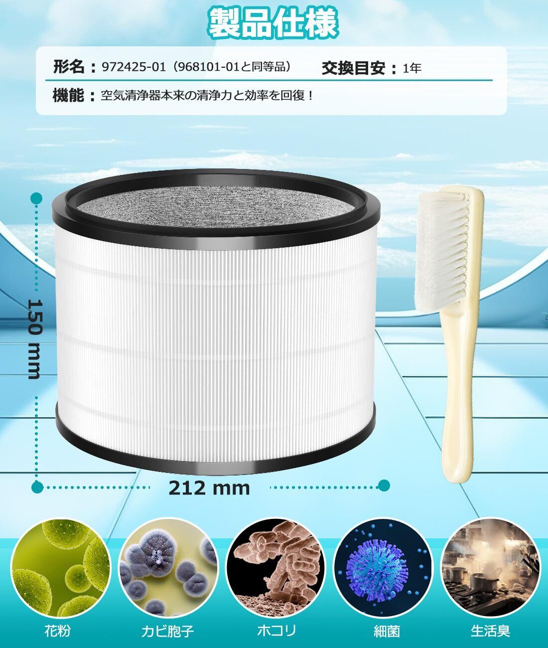 【パッケージ内容】空気清浄機フィルター ×1、お手入れ用ブラシ×1、日本語取扱説明書×1