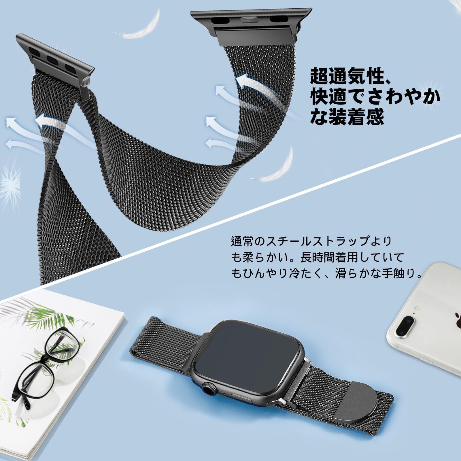 【ユニークなデザイン】:iWatch バンドは、ユニークな磁気ロックと表面研磨を備えて、メッシュデザインにより、アップルウォッチ バンドが肌に接触しやすくなり、通気性が高く、快適に着用できます。磁気ロックデザインにより、工具を使わずにバンドを簡単に取り付けたり取り外したりできます。初心者でも簡単に着用できます。(ご注意:本製品はスプレーオイルで表帯の表面を磨いているため、使用時には金属製の物体と摩擦しないでください。そうすることで、製品が色落ちする可能性があります。)