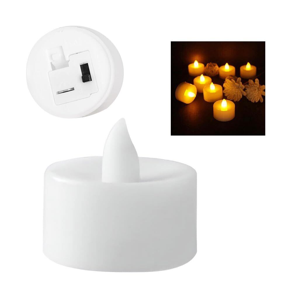 【使い勝手のよいデザイン】: 小ぶりなキャンドルライトが10個セットになっています。数個を照明のアクセントとして使用したり、パーティーやディナーに多数配置してメインの装飾として使用したりできます。ボタン電池(1.5V)で動作し、経済的で便利です。オンオフのシンプルな操作が特徴です。