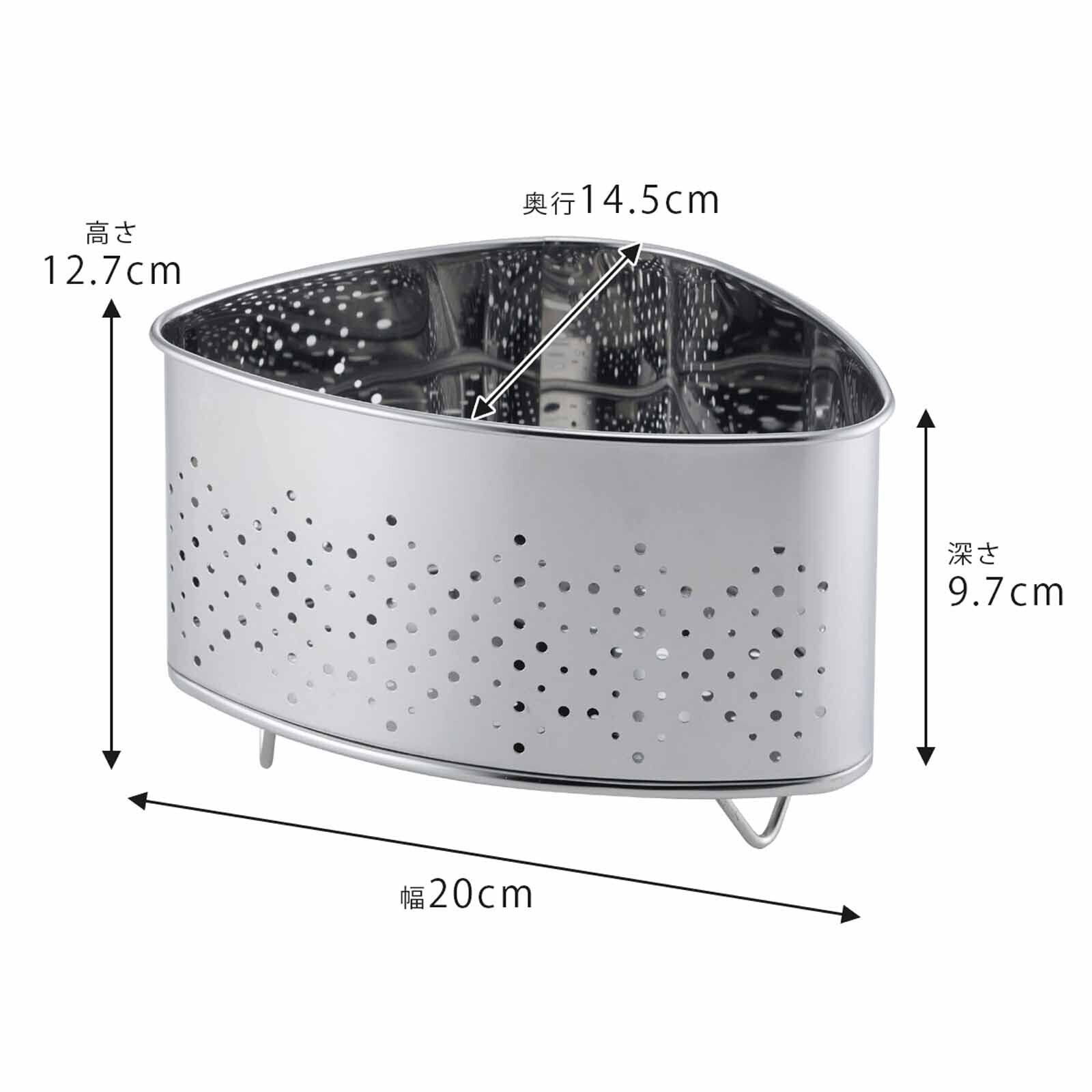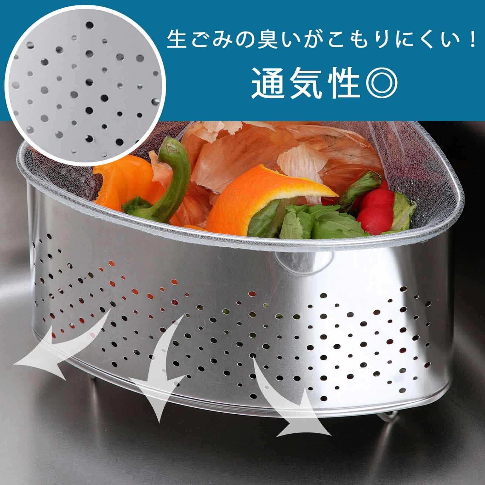 下村企販 通気性のいい 三角コーナー 【日本製】 抗菌 水はけが良い 生ごみ入れ シンク用 においがこもりにくい 脚付き シルバー ステンレス 燕三条 41778
