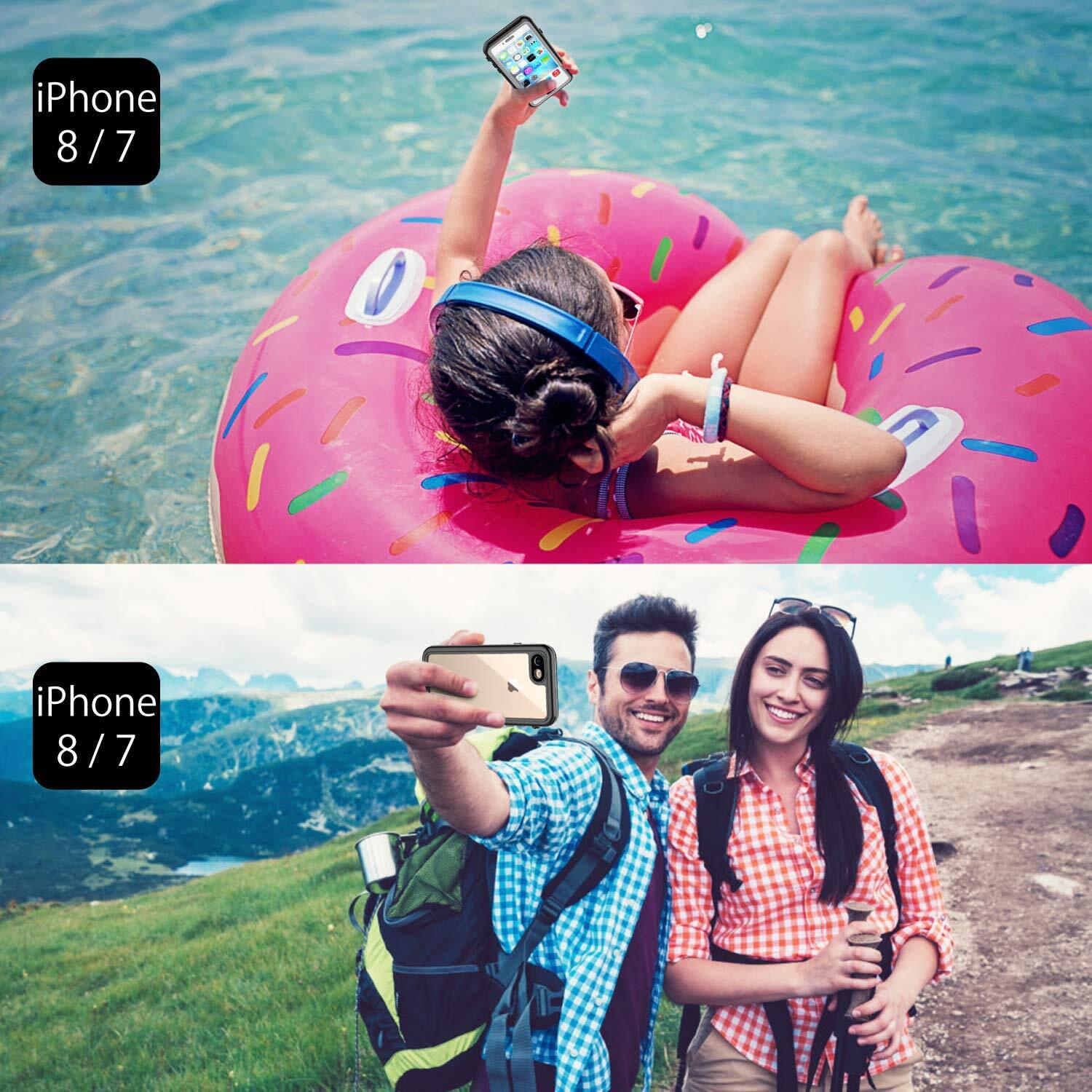iPhone SE3 (第3世代) / SE2 (第2世代)/ iPhone 8 / 7 防水ケース IP68完全防水防塵規格 耐衝撃 米軍規格 ワイヤレス充電 指紋認証可能 タッチスクリーン対応 軽量 ストラップ付き アウトドア・スポーツ・海・釣り用 全面保護ケース(4.7インチ)