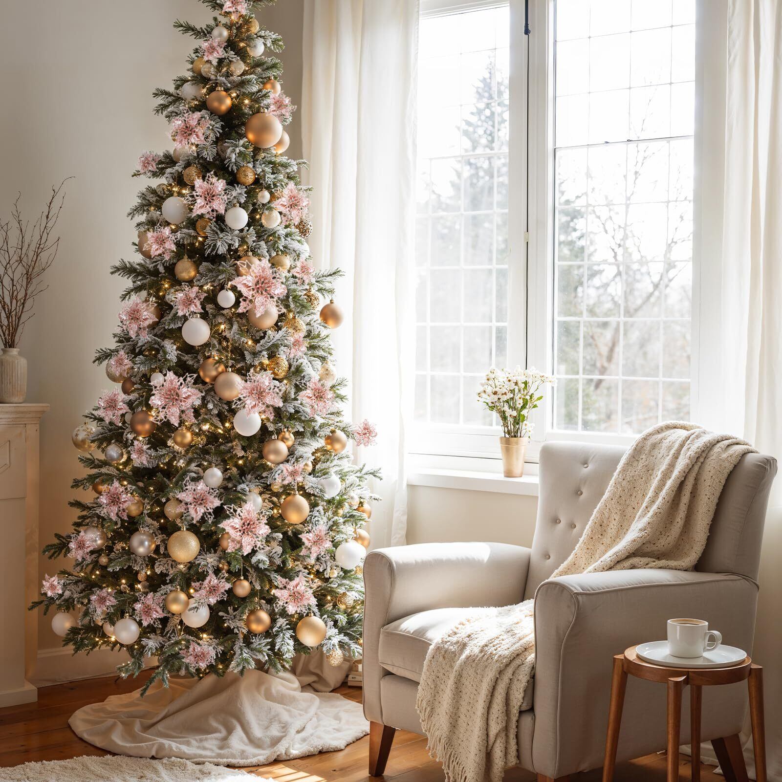 クリスマスの雰囲気を高めるこのローズゴールドの装飾的な花は、お部屋を上品で華やかに演出します。21個のセットには、大きさの異なる3種類の花が含まれています。最大サイズは直径約16.5cm、中サイズは約12cm、最小サイズは約10cmです。きらびやかなグリッターが施された繊細なデザインは、クリスマスツリーや壁掛け、テーブルセンターピースなど様々な用途で活躍します。華やかさとエレガンスを兼ね備えた、この特別な装飾品で、今年のホリデーシーズンを彩りましょう。