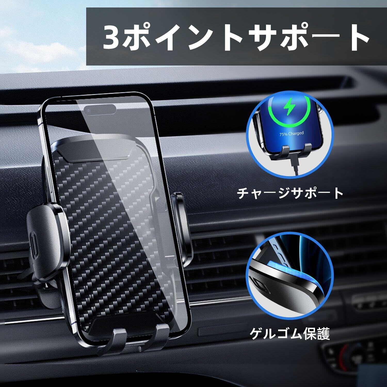 「多機能を搭載する車載スマホホルダー」車載スマホホルダーは粘着性に強い吸盤と吹き出し口のクリップに備え、それをダッシュボード、フロントガラスか吹き出し口に簡単に取り付けさせる同時に運転中に極めの便利さをもらいます。