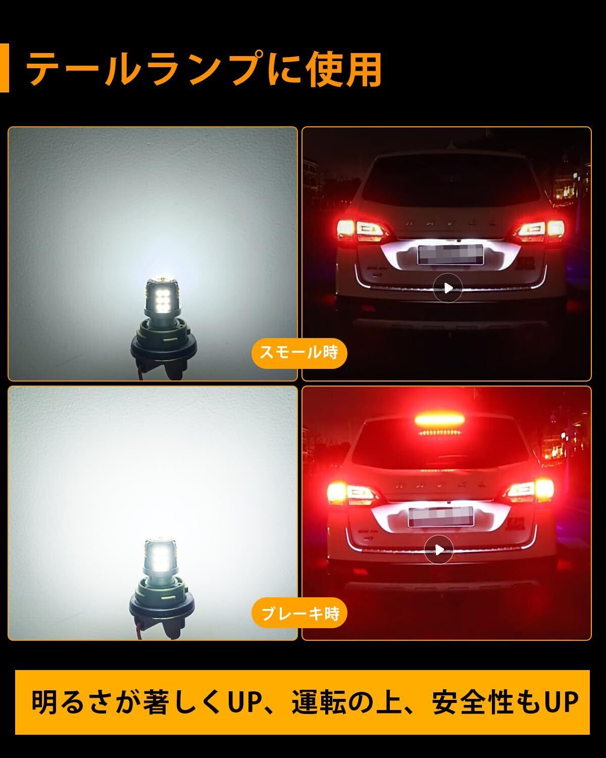 【使用範囲】テールランプ ブ/レーキライトの交換に最適。S25 LEDダブル 適用ソケット:S25、BAY15D、 P21/5W、7440.『バイク使用不可』。
