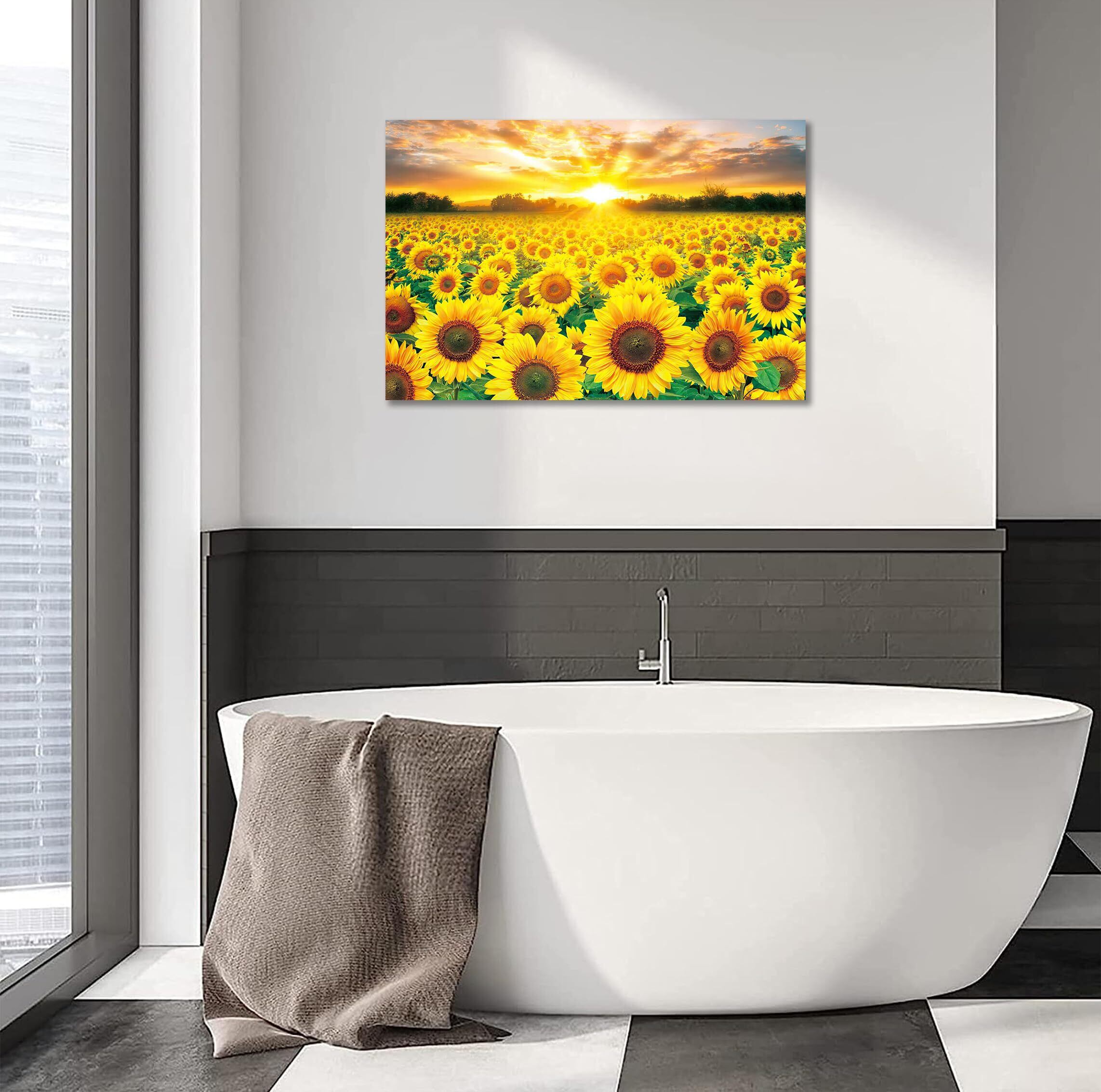 アートパネル ひまわり 向日葵 風景画 キャンバス絵画 ポスター ウォールインテリア 壁掛け 壁飾り ポスター おしゃれ モダン的な部屋飾り ギフト木枠付きの完成品 (40x60cm)