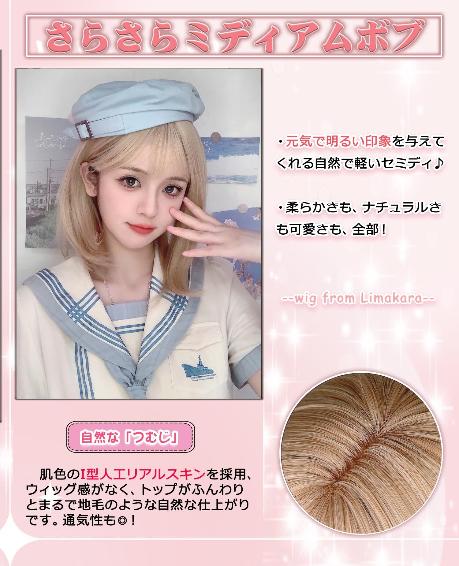 ウィッグ セミロング ボブ ストレート 自然 ミディアム フルウィッグ 女装 耐熱 かつら Limakara さらさら ロリータ 小顔効果 wig 原宿 普段使い ネット/櫛付き 白金色