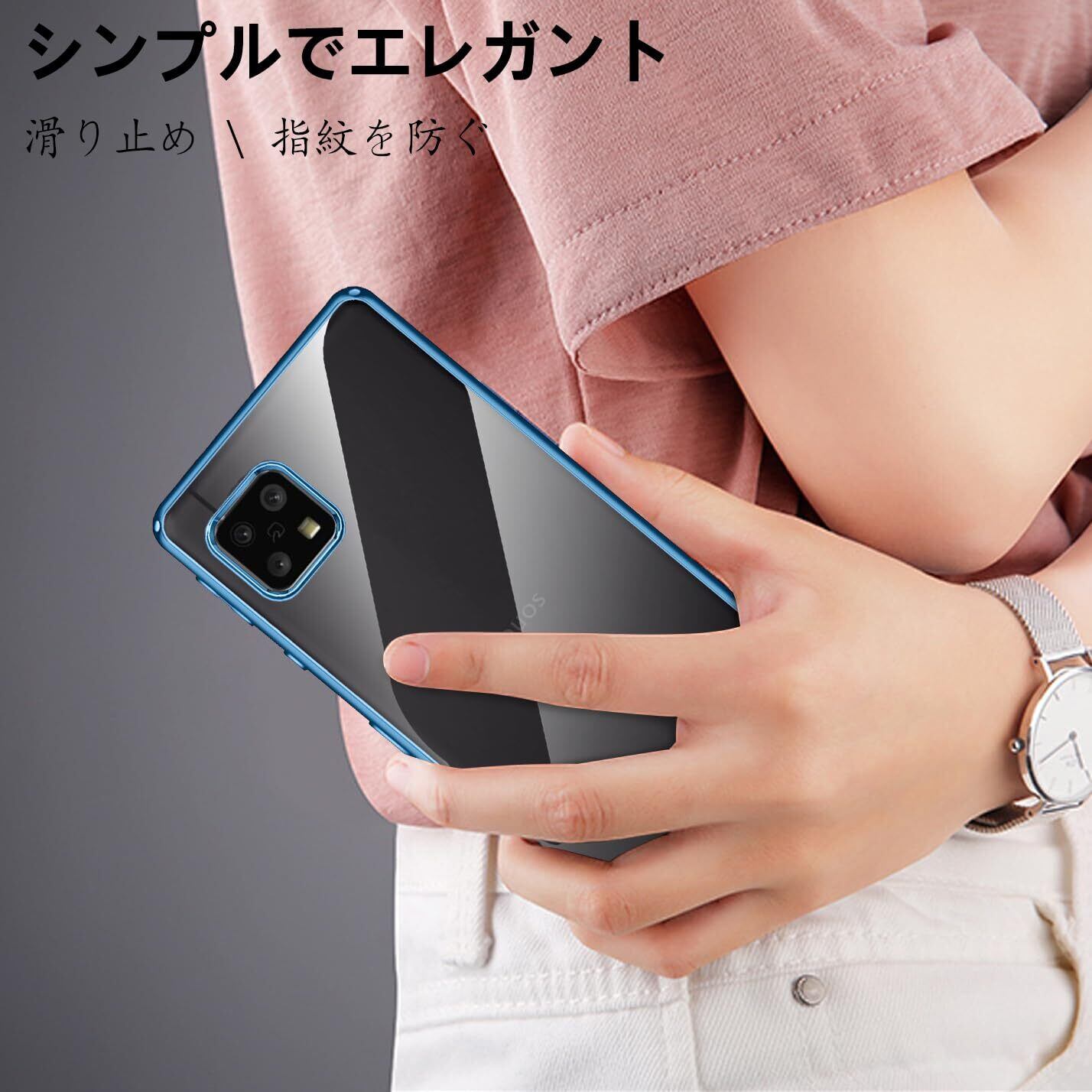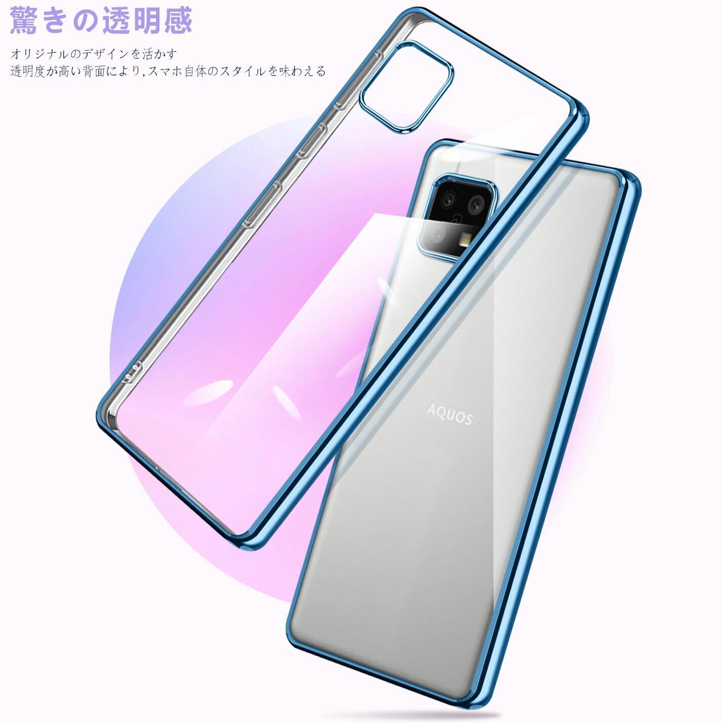 AQUOS Sense4 ケース クリア sense5G カバー sense4lite / sense4 basic SH-41A SH-53A SHG03 透明 耐衝撃 柔軟 薄型 液晶保護 スマホケース ソフト tpu 青縁 背面クリア メッキ加工(ブルー)