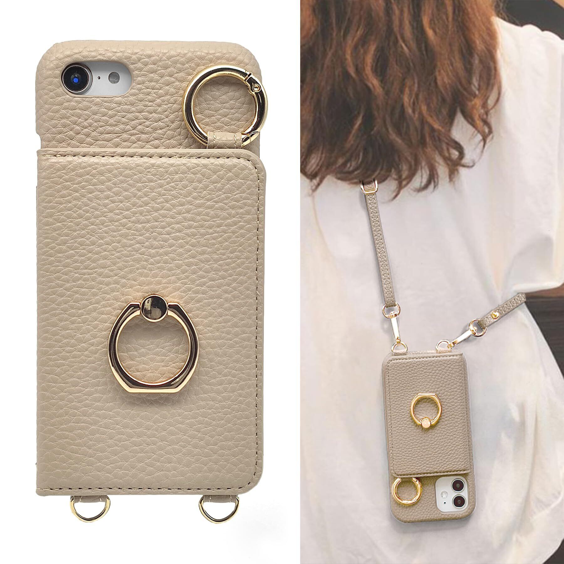 スマホケース iPhone se ショルダー カード収納 背面手帳型 リング付 iPhone se ケース ショルダー ストラップ付き スマホケース se ショルダー ミラー付き 鏡付き 肩掛け 斜め掛 首掛け 可愛 かわいい おしゃれ スタンド機能 iPhone8 7 se2 se3 第3世代 ケース ショルダー