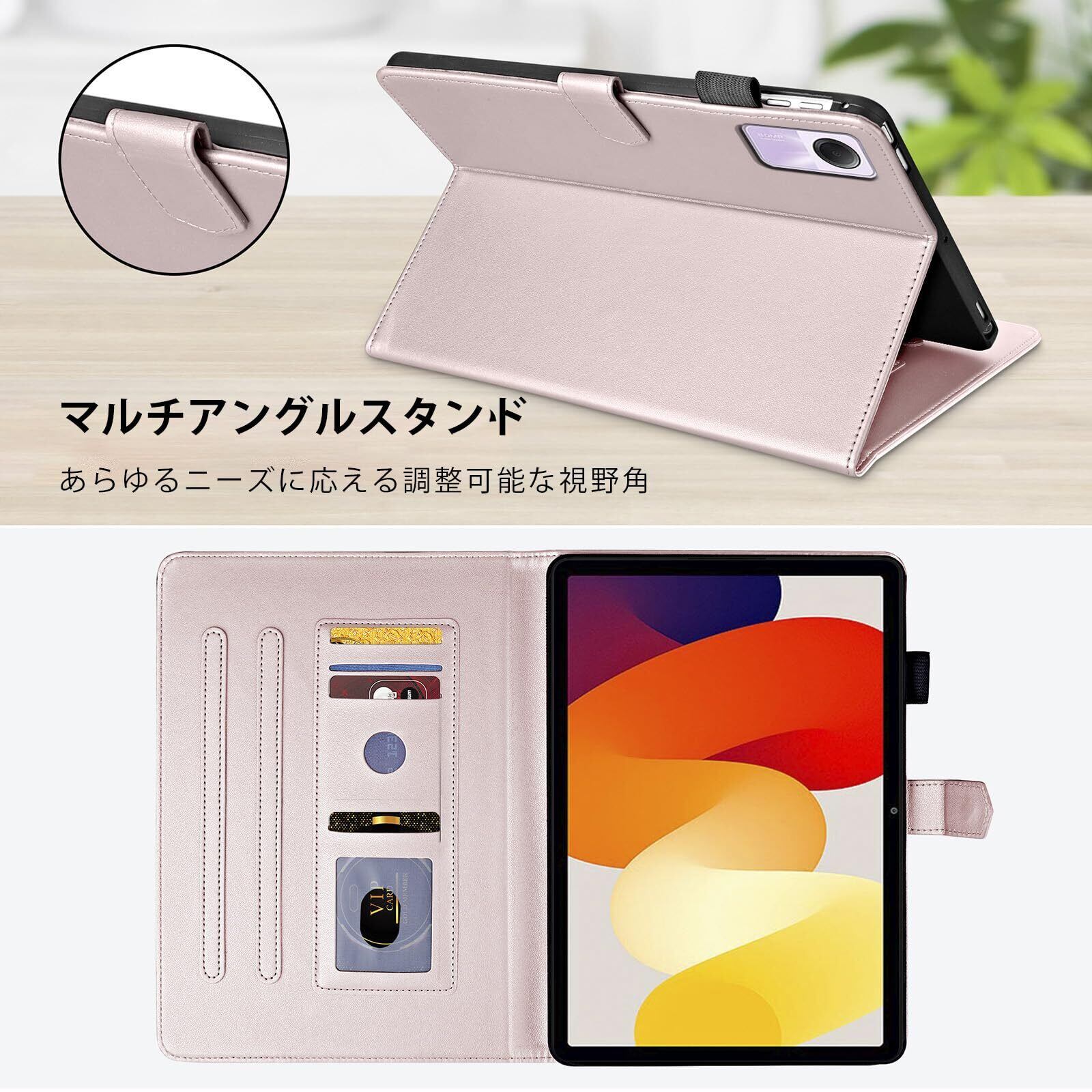 【数量限定】Kitzomi for Xiaomi Redmi Pad SE ケース 11 インチ Redmi Pad SE ケース 手帳型 11 インチ redmi pad se カバー 11 インチ xiaomi pad se ケース カード収納 スタンド機能 耐衝撃 高級PUレザー 磁石クリップ 全面保護 Redmi SEケースターコイズ シャオミredmi pad se カバー,ローズゴールド