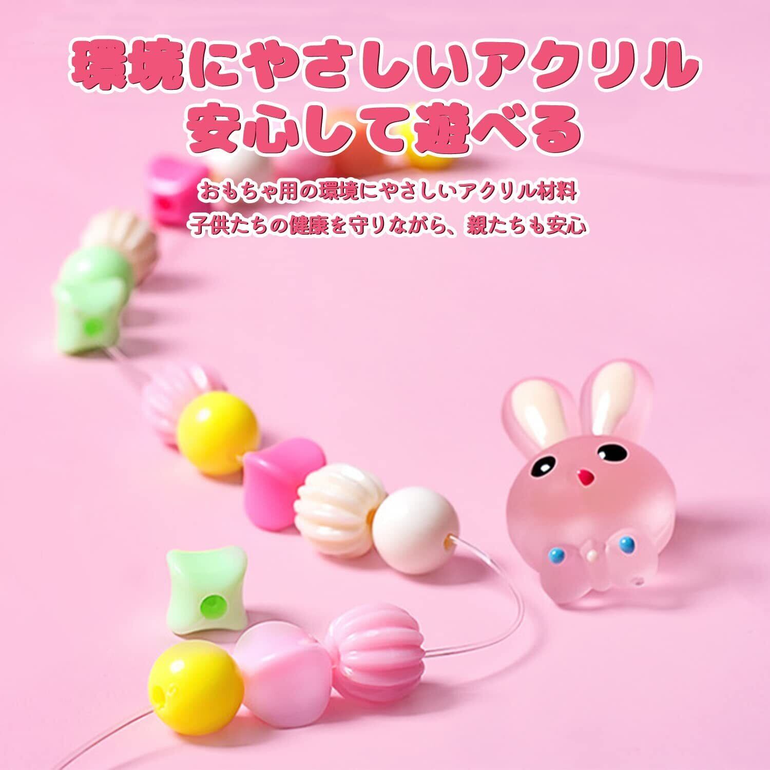 HUAZONTOM ビーズ 手芸 ビーズ おもちゃ 女の子 アクセサリー キット ビーズ セット カチューシャ キッズ ジュエリー 知育玩具 クリスタルビーズ メイキングトイ ブレスレット ネックレス 手作りキット ハンドメイド 手芸キット 子供の日 クリスマス 小学生 プレゼント DIY ウサギ キラキラセット