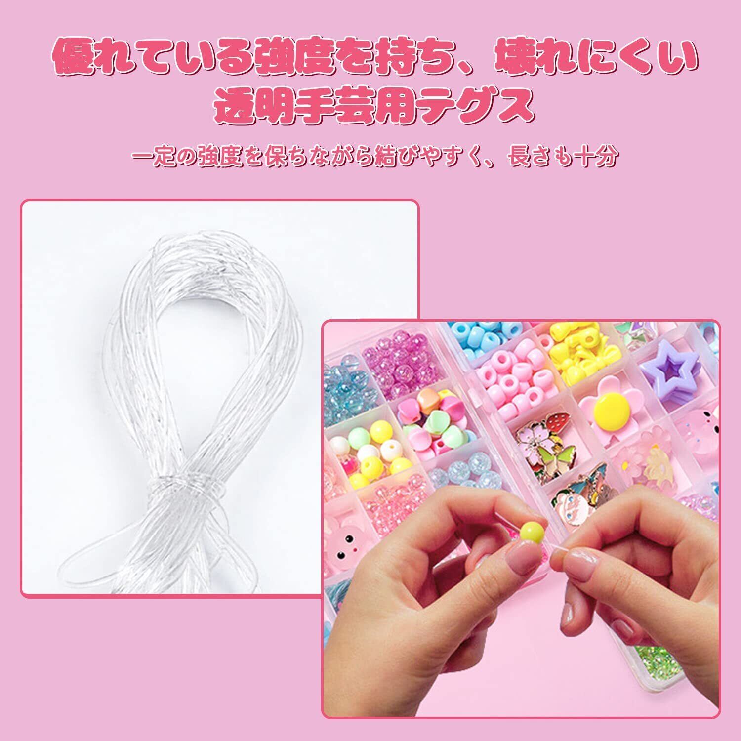 「種類豊富ビーズキット」ベース形のビーズのほか、大きめかわいい動物形のビーズも用意しております。さらに13M長さのテグスとミニハサミも付属し、アクセサリーキットなど種類がとても豊富です。