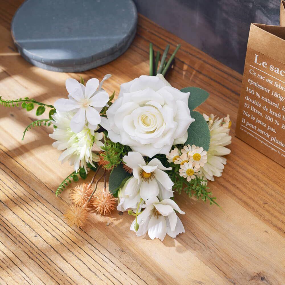 【人気商品】WillingYou 造花 ブーケ ウェディング フェイクフラワー 花束 手作り オシャレ 玄関 インテリア 撮影 小物 ハロウィン 母の日 ギフト バラ ガーベラ フェイクグリーン 1束 ホワイト