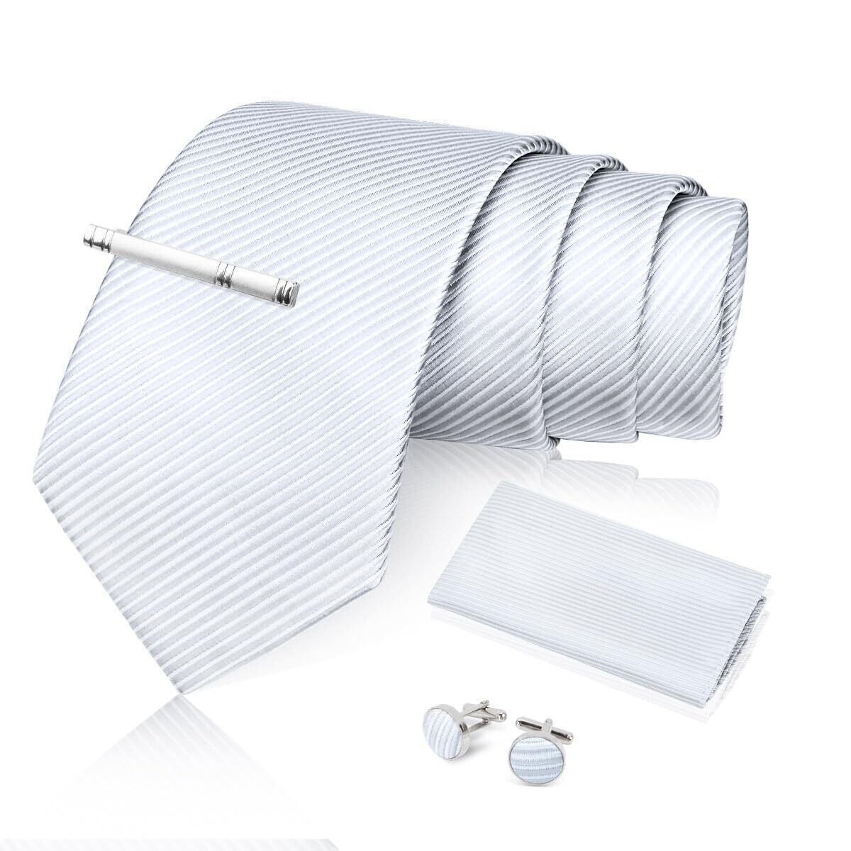 【パーフェクトギフト】ネクタイ 1本+ハンカチ 1本+カフスボタン 1セット+タイピン 1本の4点ネクタイセットです、非常に高級感に見え、統一感があります、同柄品セット、コスパ が高い、セットで合わせると格好よく見えるビジネスマンのイメージが完成度の高いです。単品でご使用いただくと、服装やTOPに合わせて、気分や魅力を演出します、ビジネス、結婚式、日常業務、カクテルパーティ、宴会、ホームパーティー、パーティー、レジャーなどシーン適用します;
