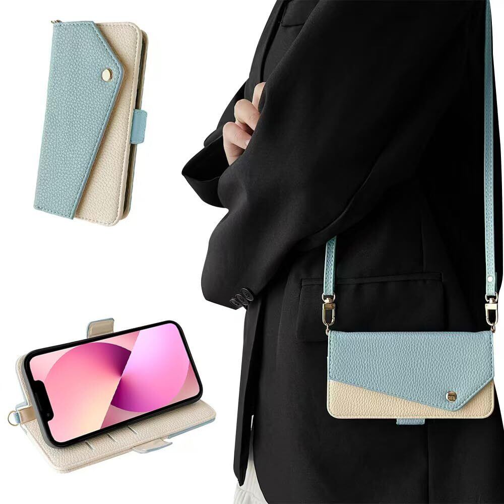 【新着商品】Kahper for iPhone13 mini ケース 手帳型 ショルダー いphone13mini ケース 手帳型 おしゃれ iphone13 ミニ スマホケース 財布型 可愛い アイフォン13 mini 手帳型 軽量 衝撃吸収 PUレザー 全面保護 擦り傷防止 防塵 携帯カバー 13ミ マグネット式 スタンド機能 カード収納 大人 女性 人気 5.4インチ(ブルー)