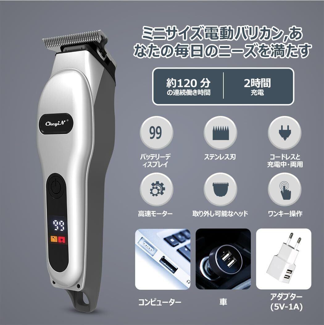 CkeyiN 電動 バリカン メンズ 散髪 精密彫刻 0.1mm ミニサイズ ヘアトリマー 刃水洗可 コードレス ヘアーカッター T字カミソリ USB充電式 家庭用