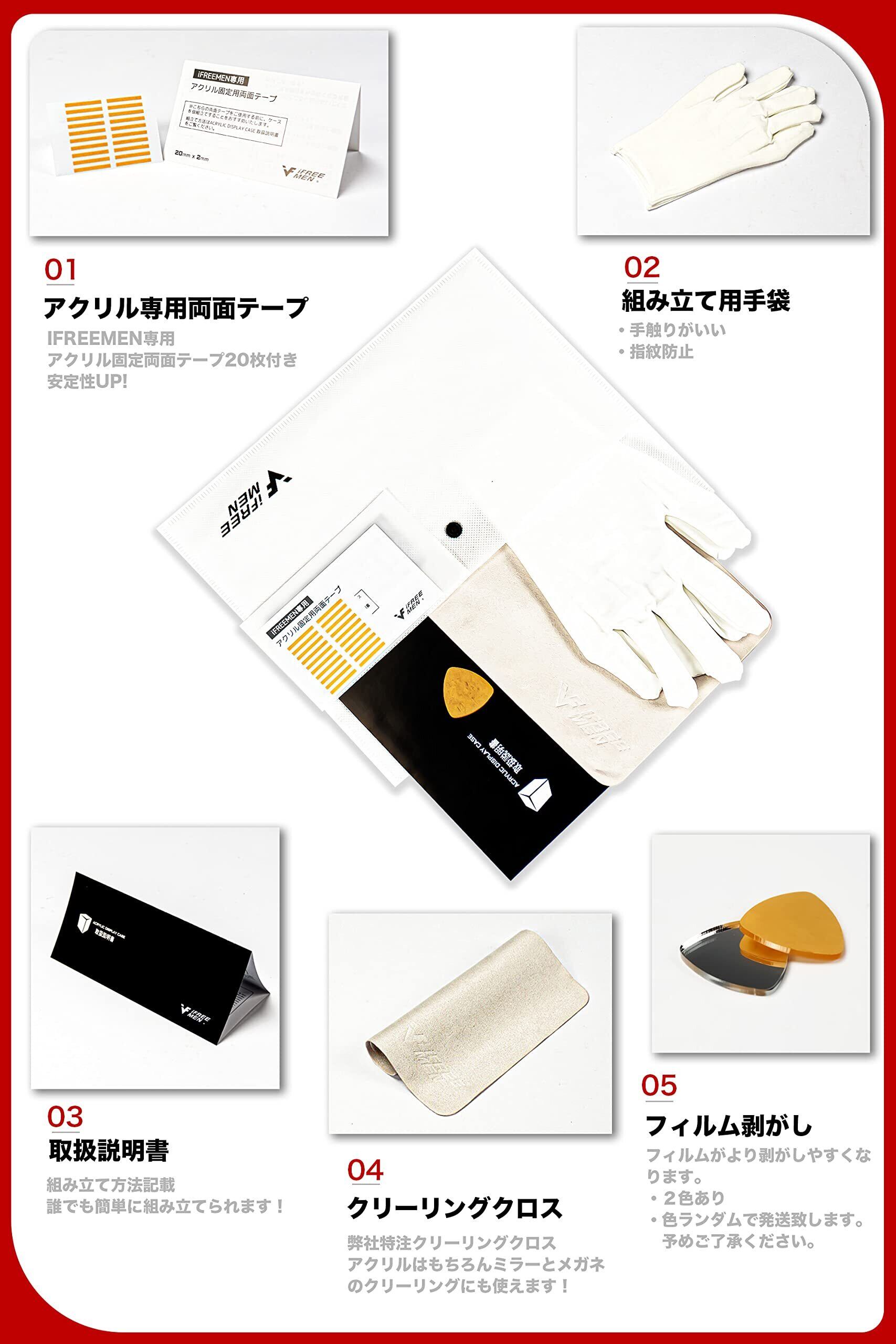 特徴:底板と背面ミラー!展示効果UP!高透明度 パーツ個別保護フィルム 組立便利グッズ付属 (使い捨て手袋、クリーニングクロス)ほこり対策