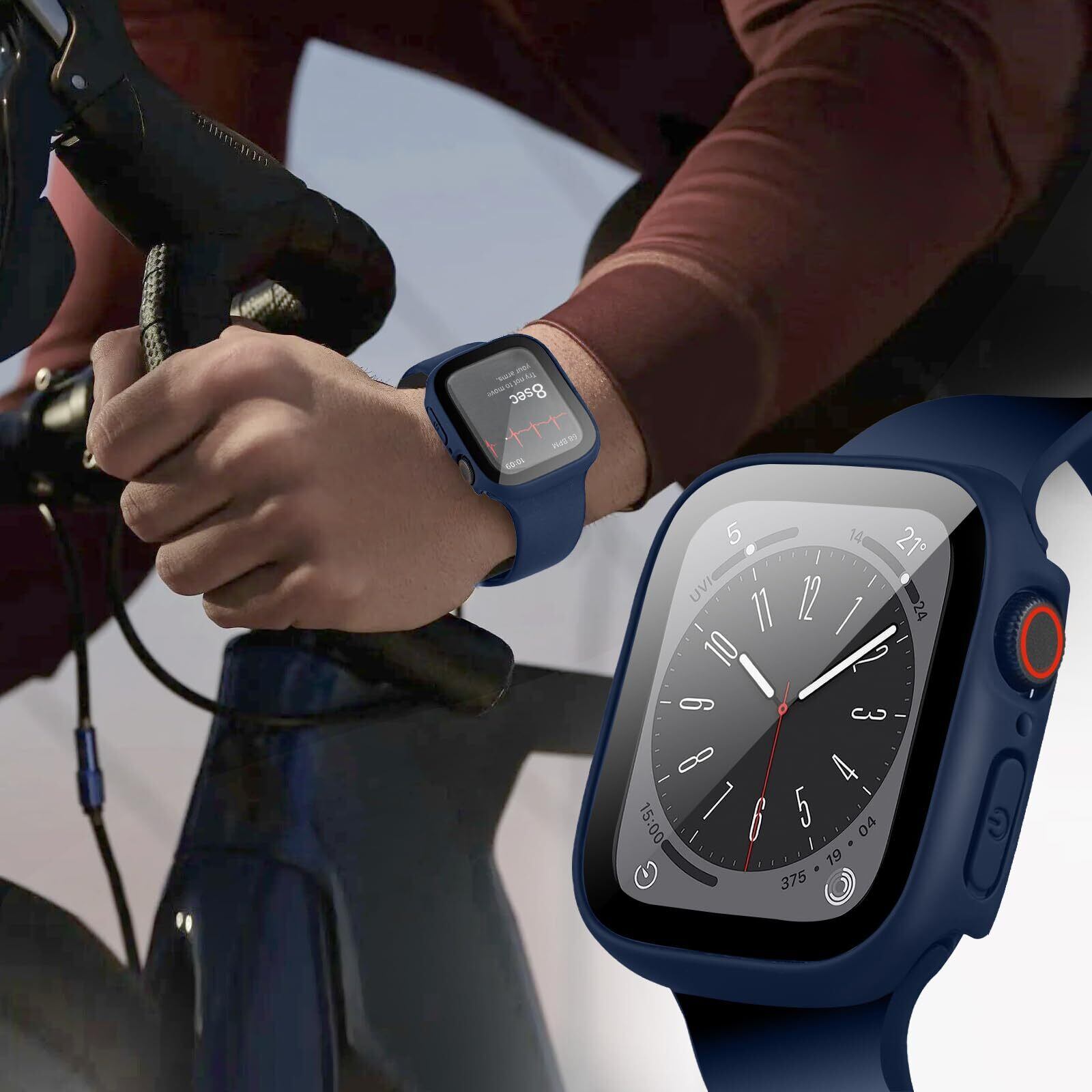 ATTKAI for アップルウォッチ カバー Series 10/9/8/7/6/5/4/SE2/SE for Apple Watch カバー 防水 一体型 PC素材 硬度9H強化ガラス 高透過率 指紋防止 超薄型 耐衝撃 全面保護 for Apple Watch ケース (41mm,ブルー)