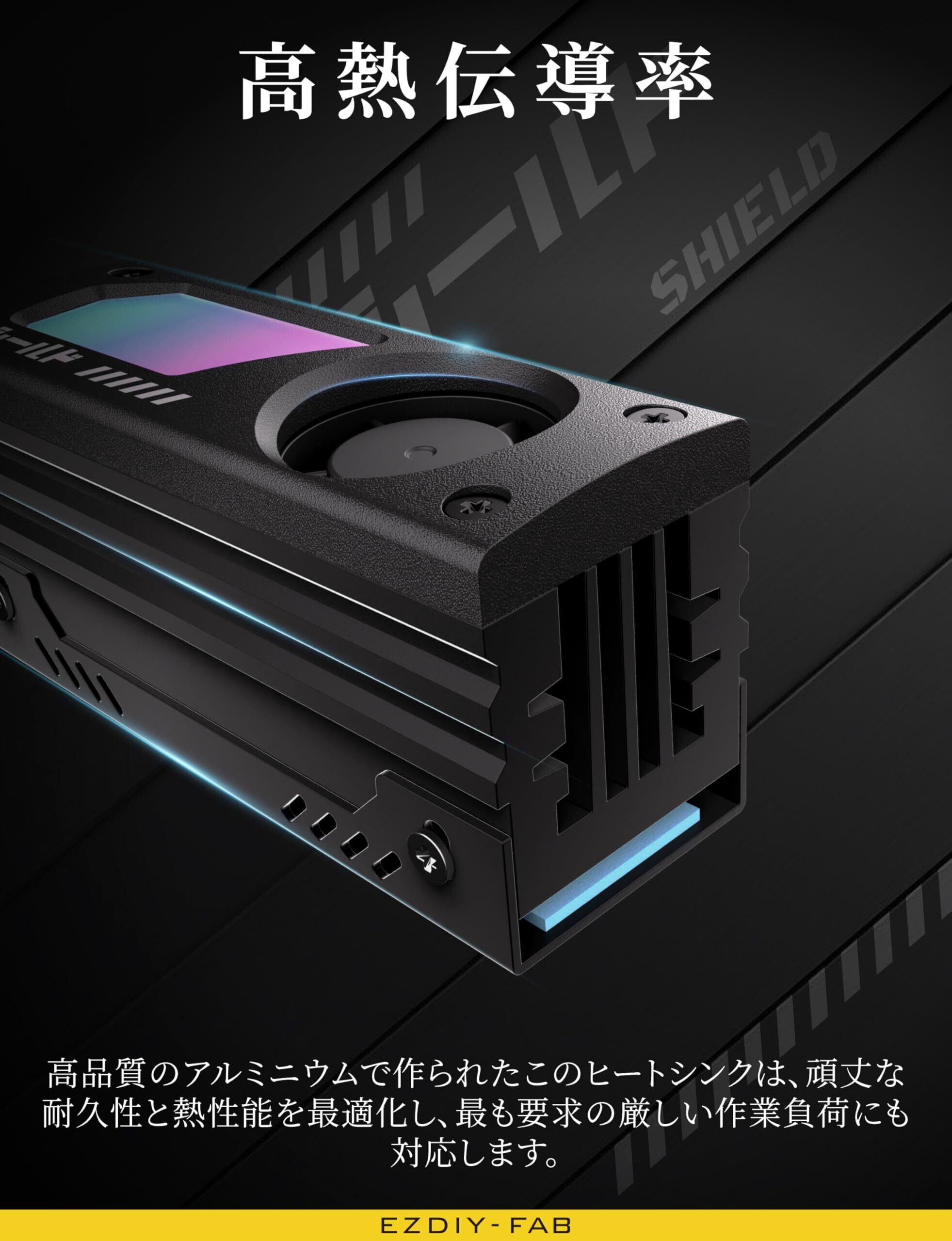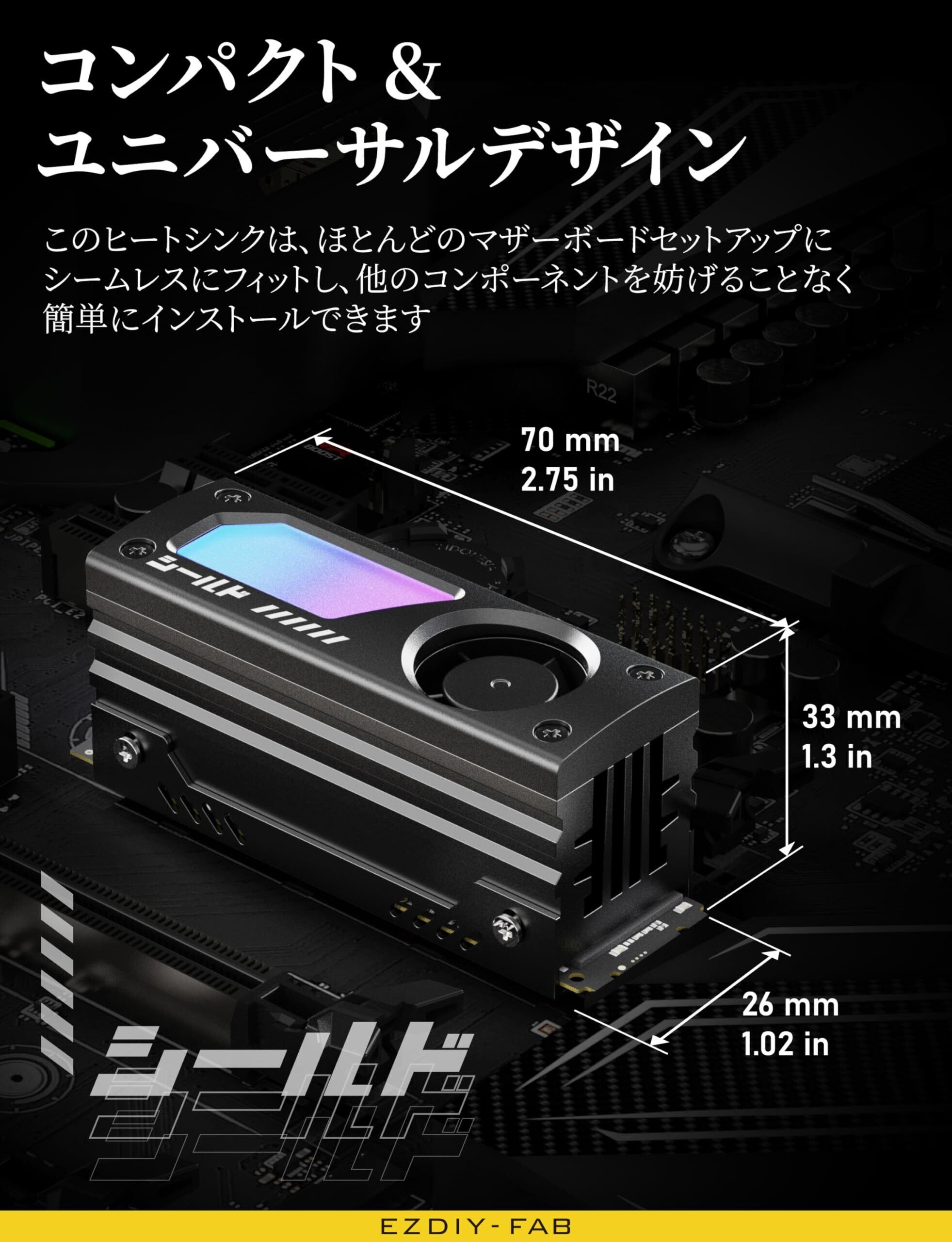 【数量限定】EZDIY-FAB シールド ARGB M.2 2280 SSD ヒートシンク 内蔵 20mm PWM 高速ファン、高性能冷却、アルミニウム製、5V 3Pin ARGB Sync対応、静音設計、効率的な放熱循環、過熱対策、簡単取付、自作PC向け、ゲーム・ビデオ編集向け、SSDの温度管理、ARGB機能付き、黒 - 1パック | allstore3